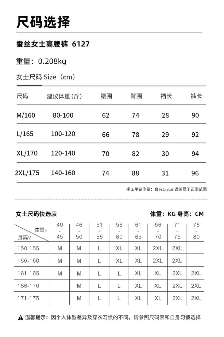 1.产品名称:320克/蚕丝女士高腰裤6127
