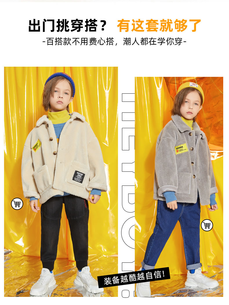 男童加厚外套秋冬款洋气秋装儿童加绒羊羔绒潮2020年新款男孩棉衣