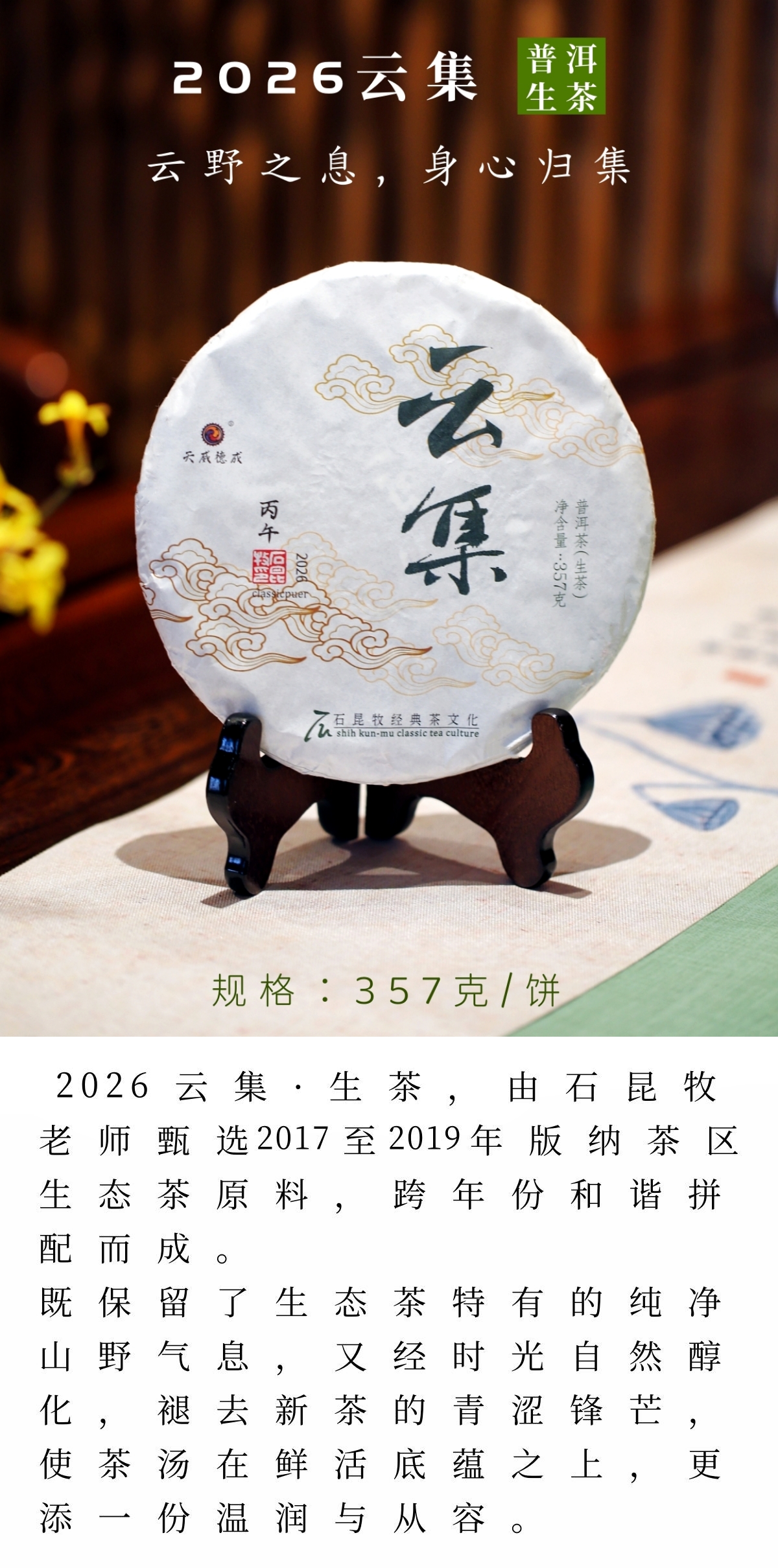 2026云集 普洱生茶 云野之息,身心归集 石昆牧老师定制