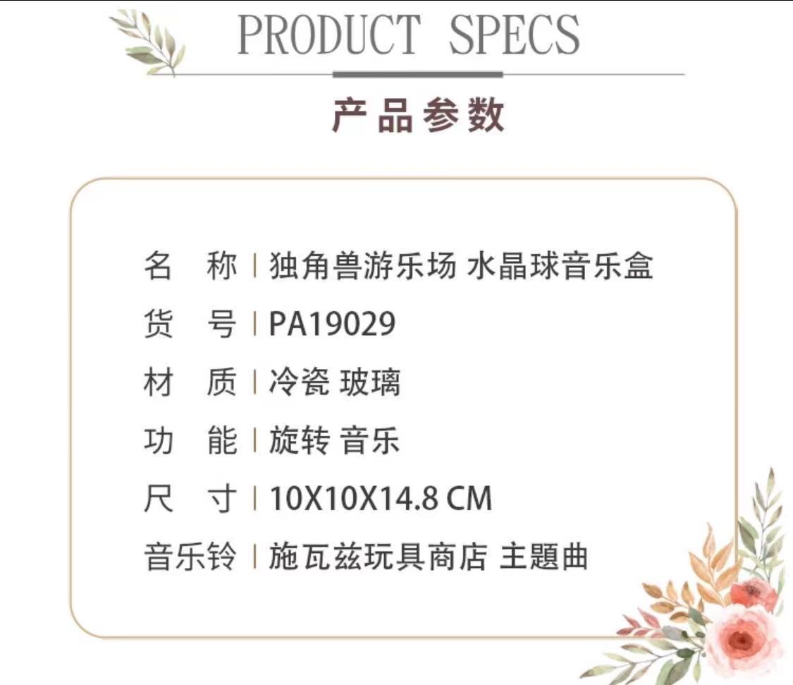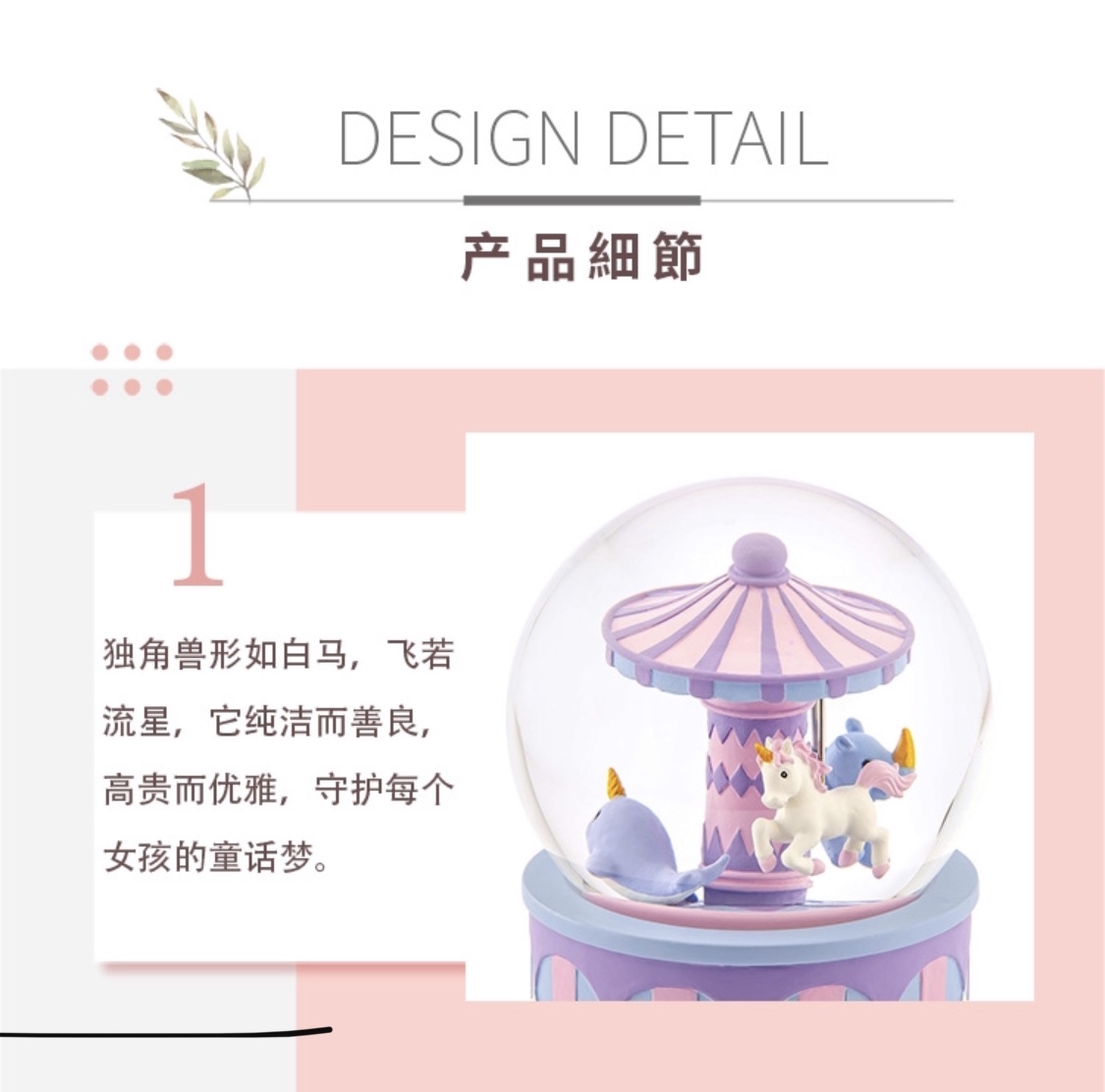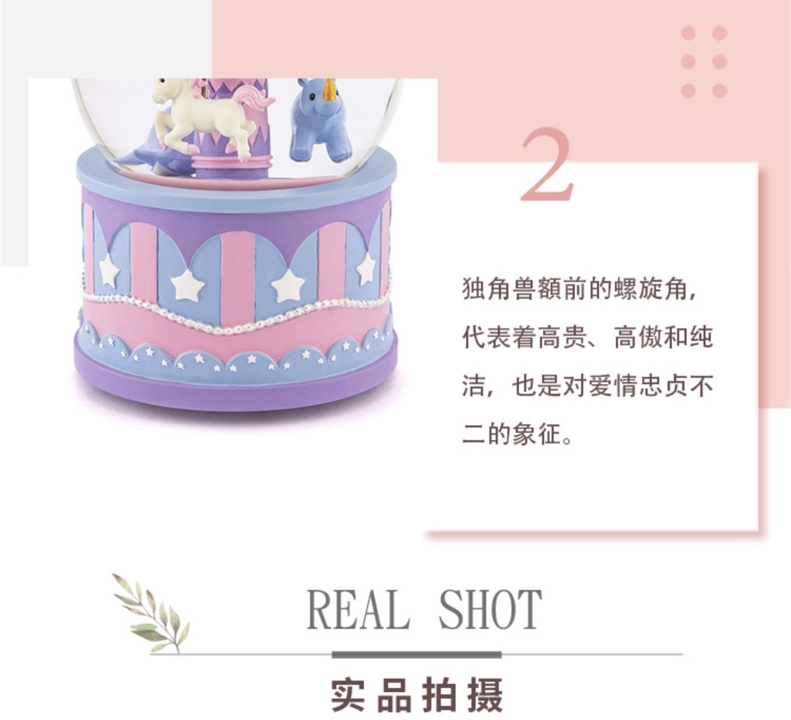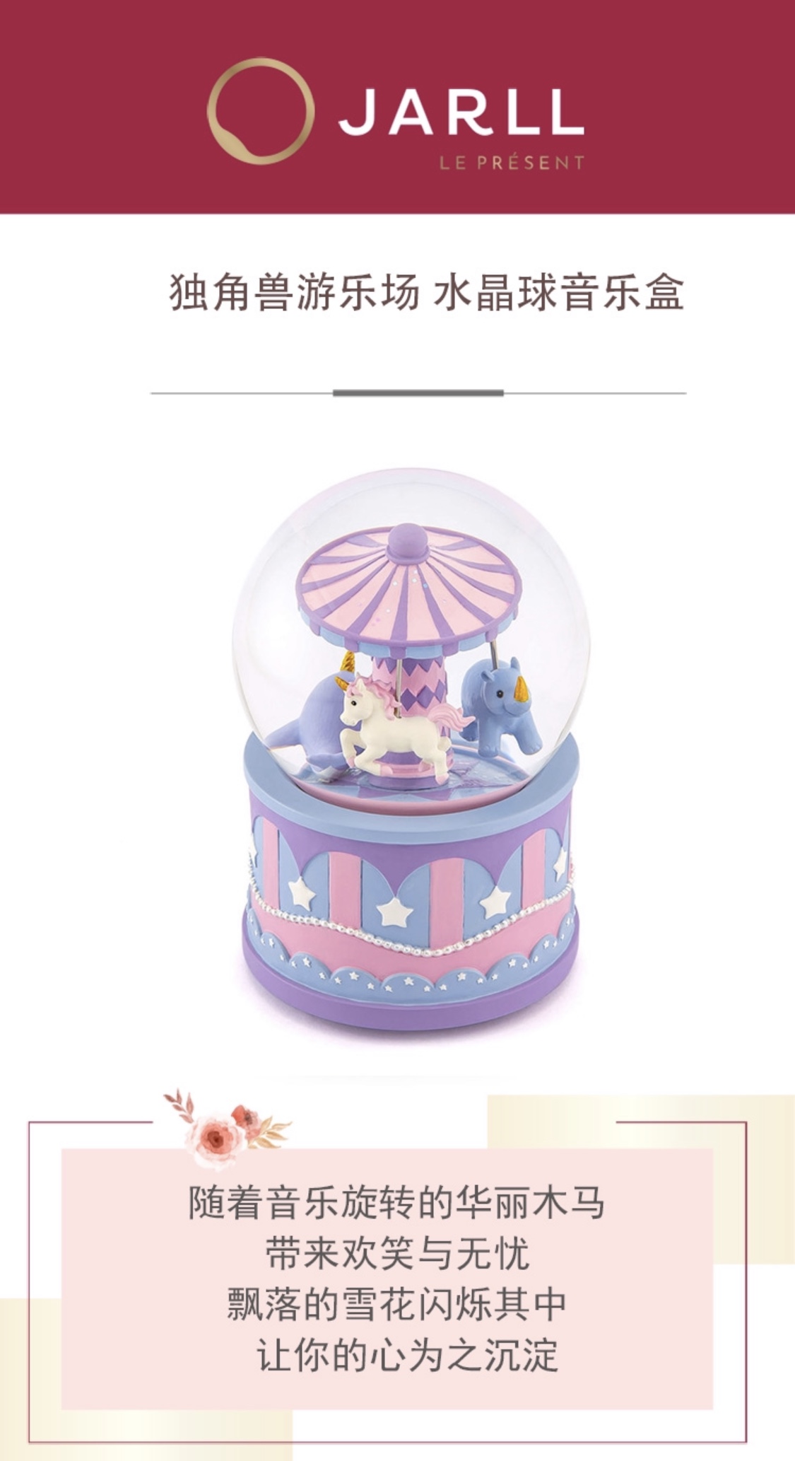 赞尔JARLL 独角兽游乐场水晶球 女孩女生八音盒水晶球八音盒生日情人圣诞礼物 七夕情人
