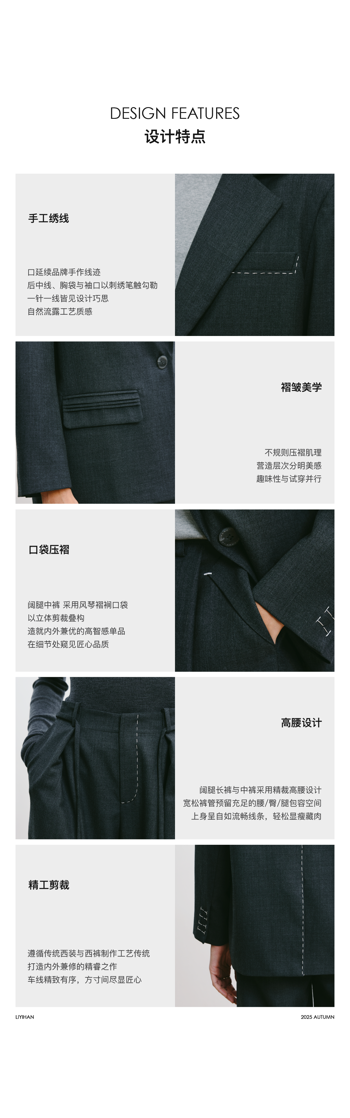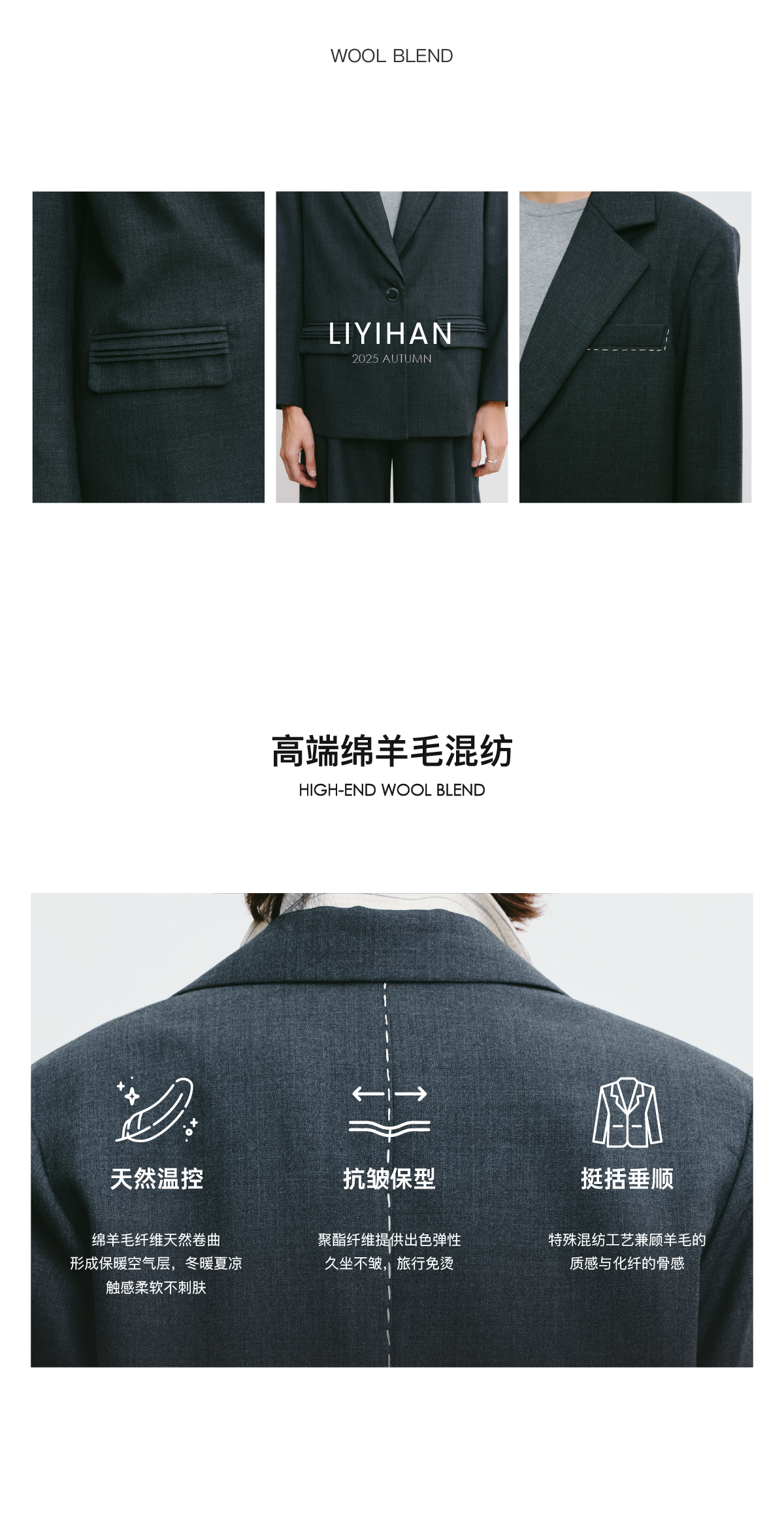 LIYIHAN林中路 2025秋新款通勤羊毛西装灰色女外套小众设计感