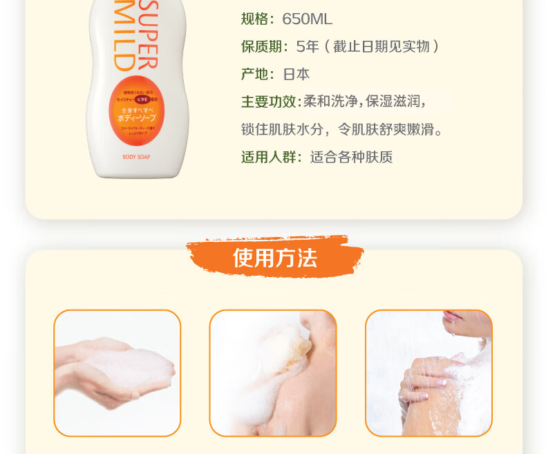 惠润(SUPER MiLD)滋润沐浴露香味持久淡雅果味沐浴乳650ml水嫩润泽保湿沐浴液