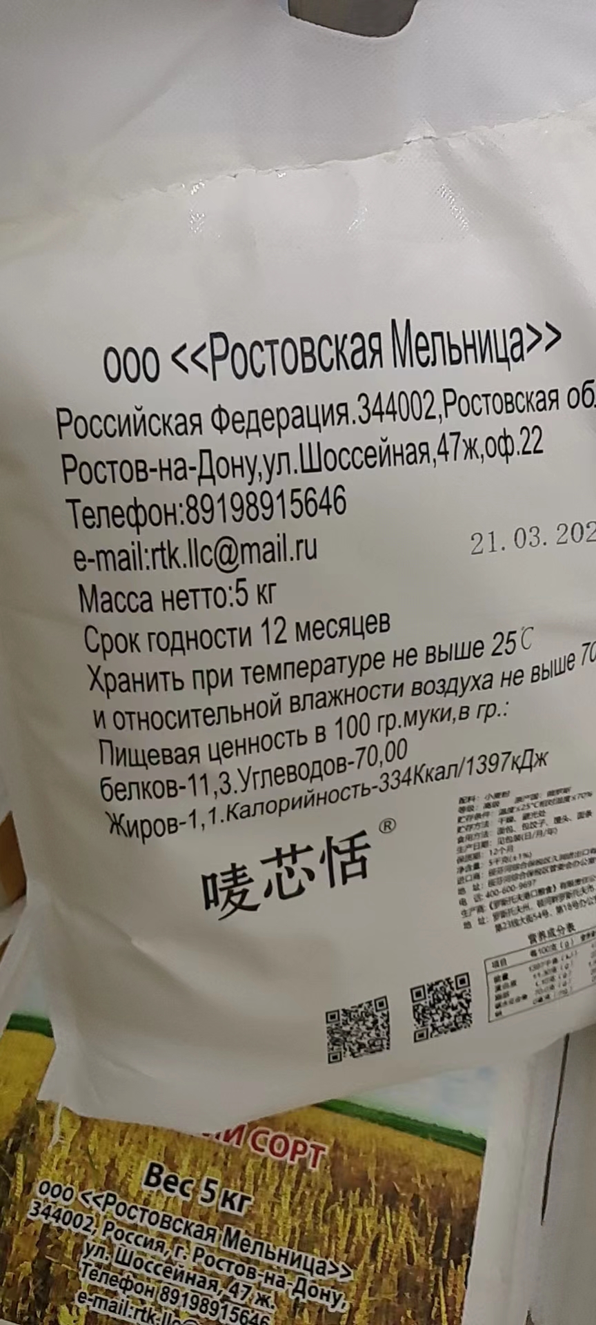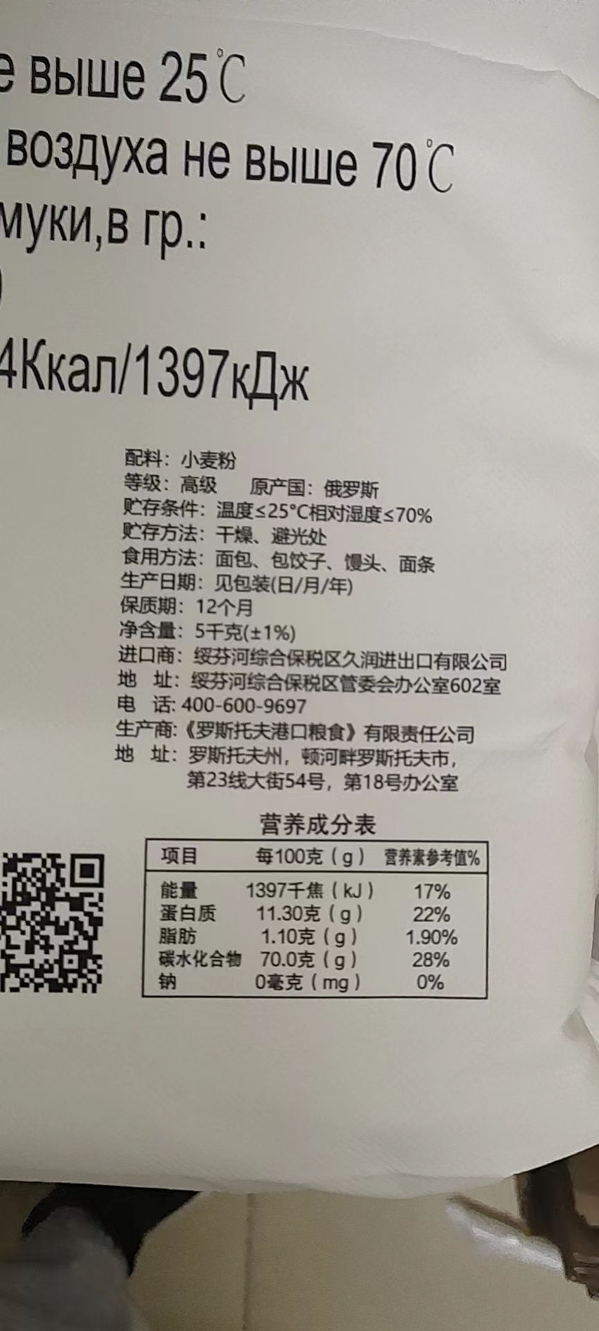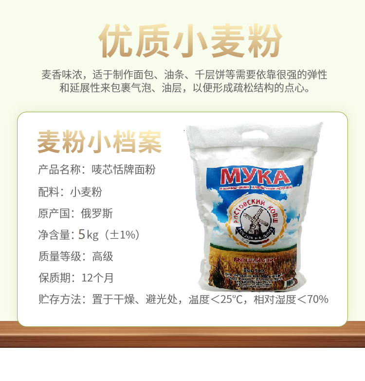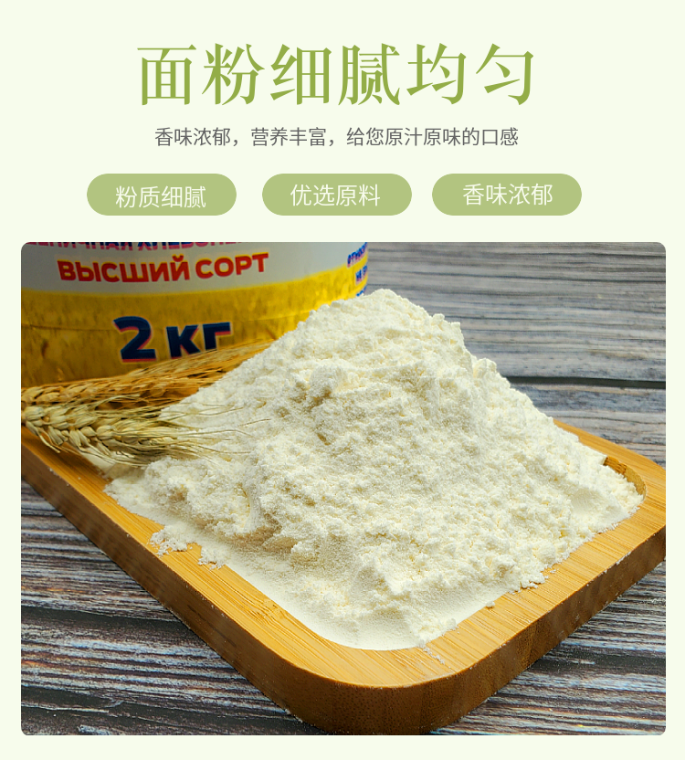 【中欧班列精选】俄罗斯进口面粉 罗斯托夫高筋面粉全麦小麦通用粉家用烘焙饺子蛋糕原料 5KG/袋 正品保证