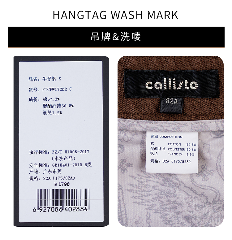 callisto松弛系列咖啡色棉混纺牛仔裤