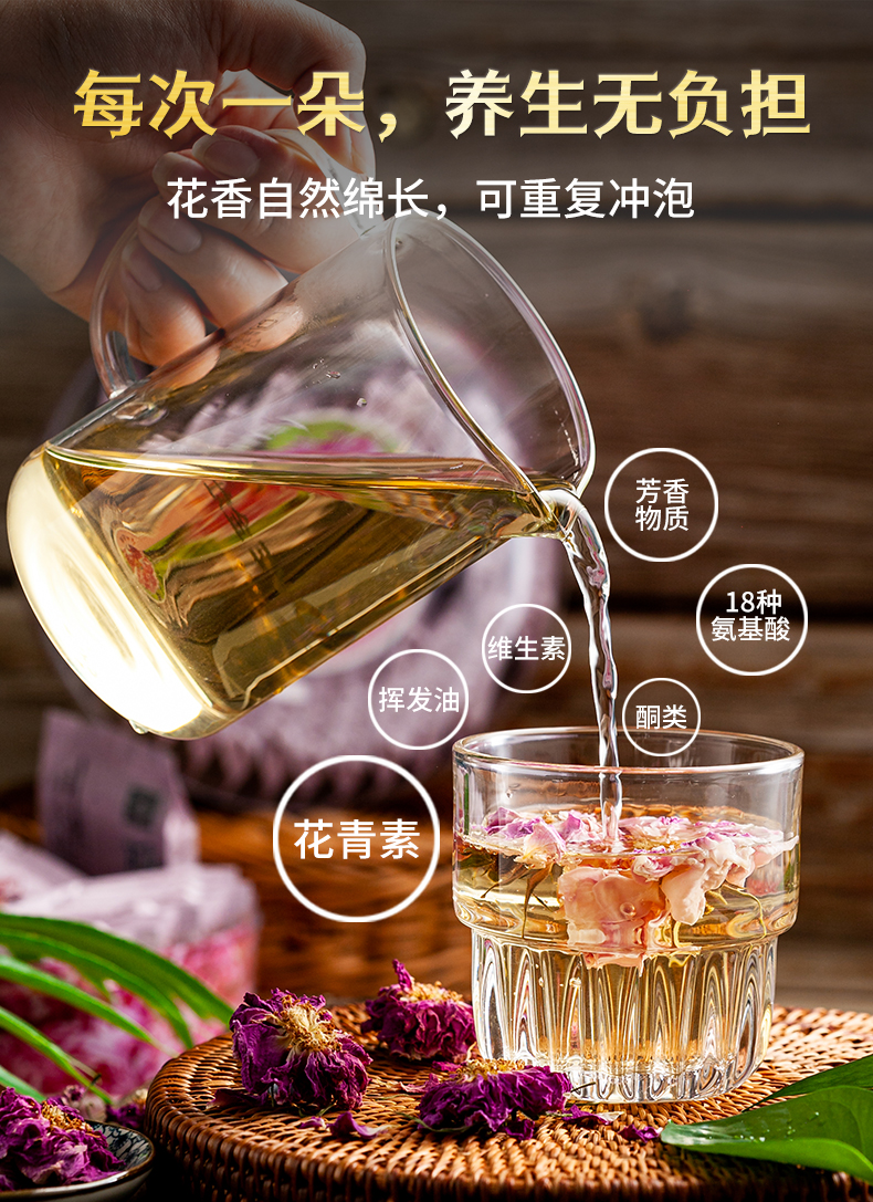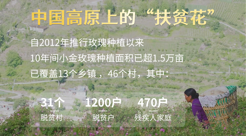 四川阿坝州 小金玫瑰花冠茶花瓣茶 整朵玫瑰当天采摘当天烘干 买2盒赠玫瑰花酱!
