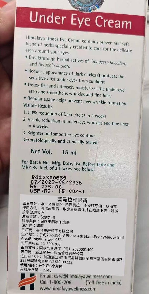 【中欧班列精选】印度Himalaya喜马拉雅植物草本滋润眼霜15ml/支