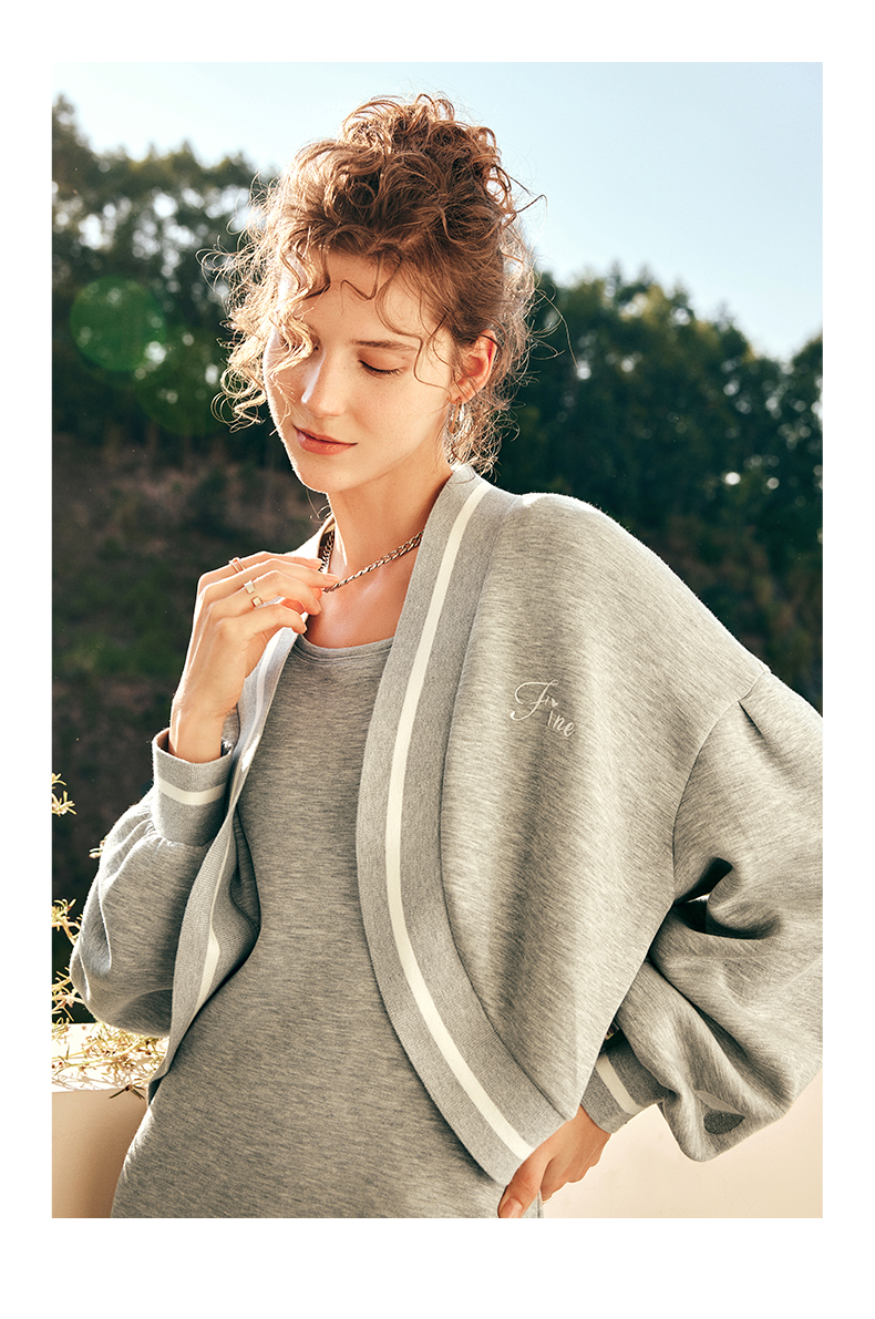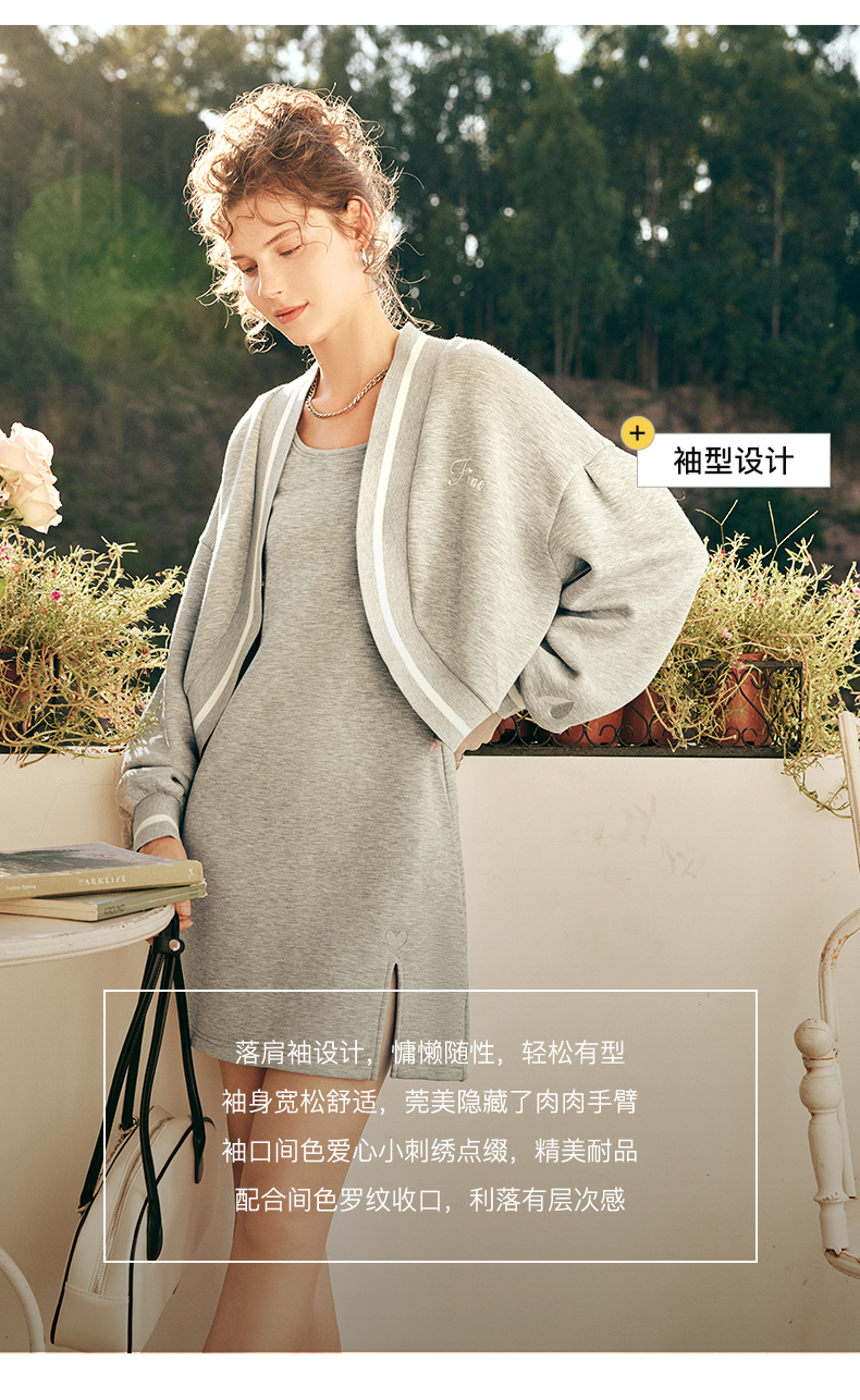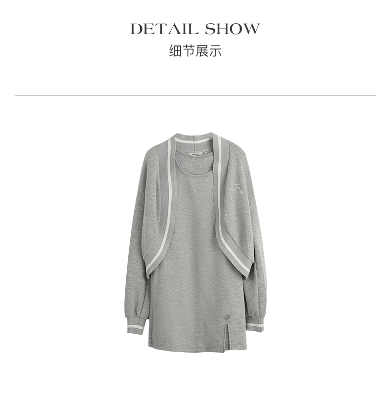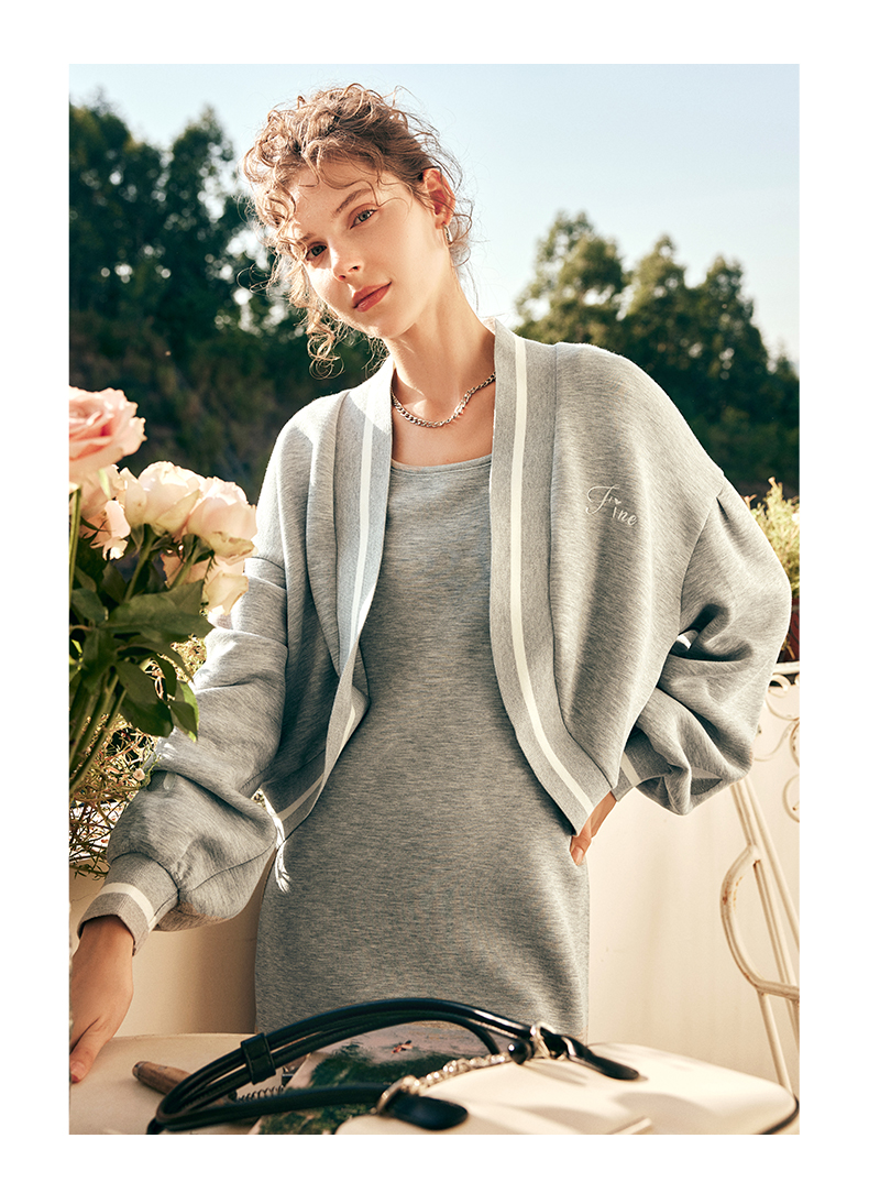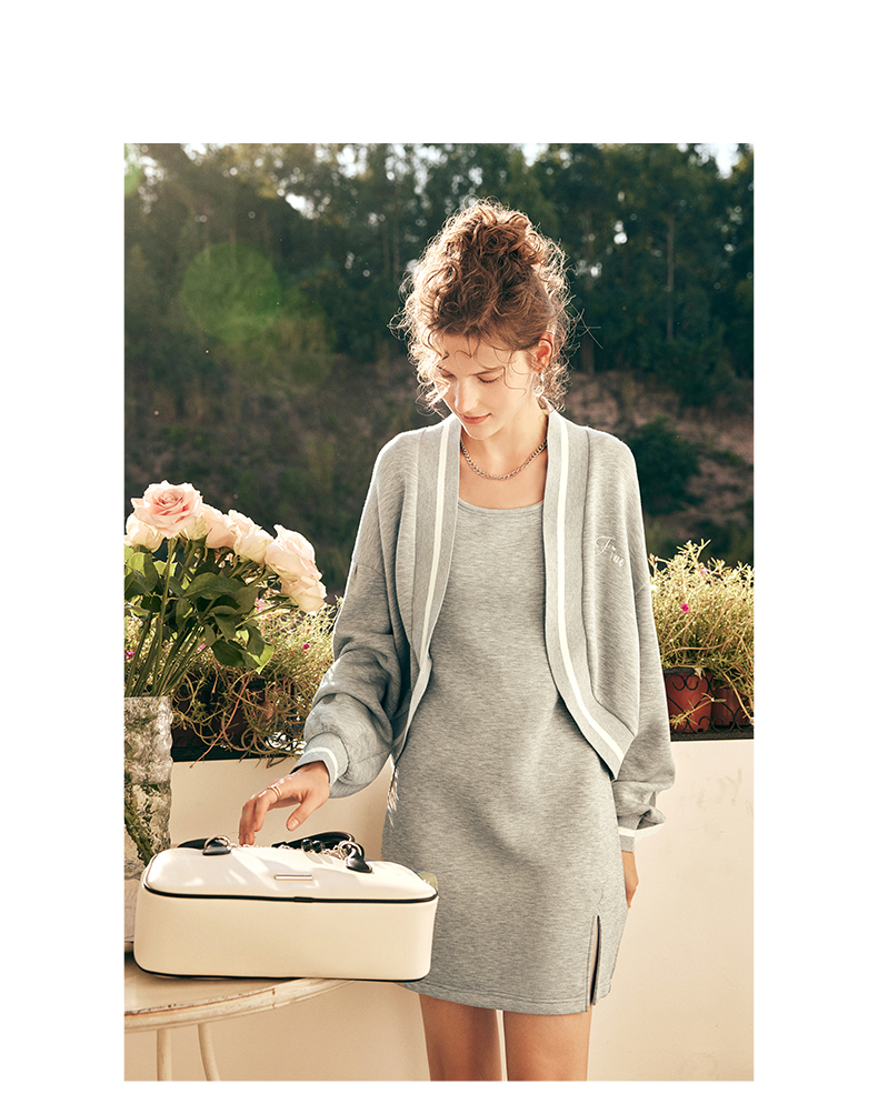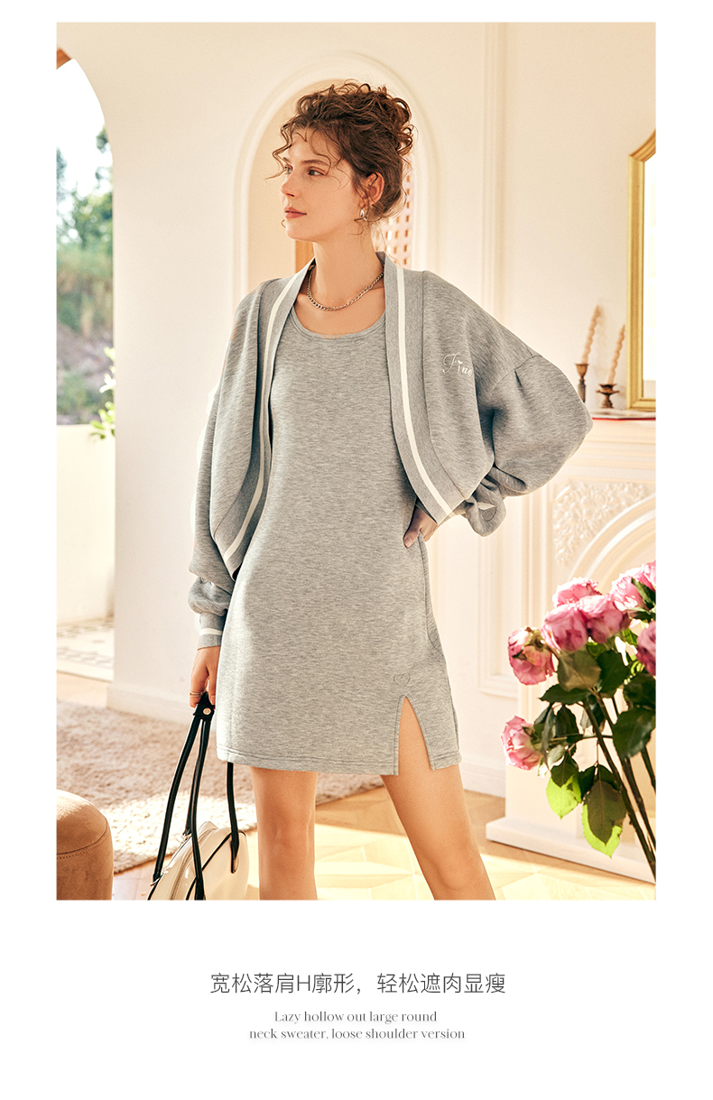OLrain欧芮儿法式灰色连衣裙时尚套装女春季2023年新款针织两件套