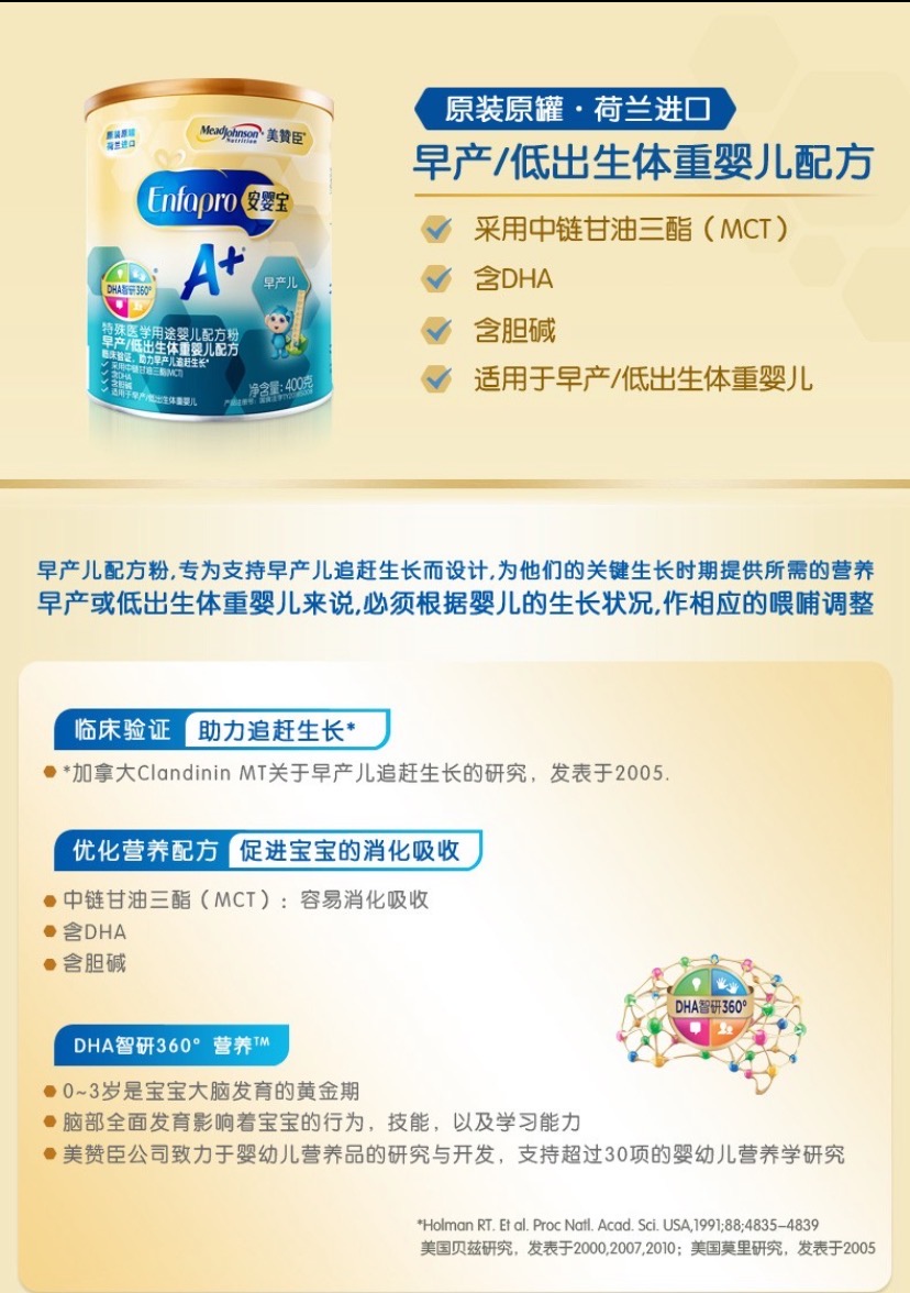 【咨询改价】【美赞臣】安婴宝早产儿配方奶粉0-12个月龄早产婴儿配方400g