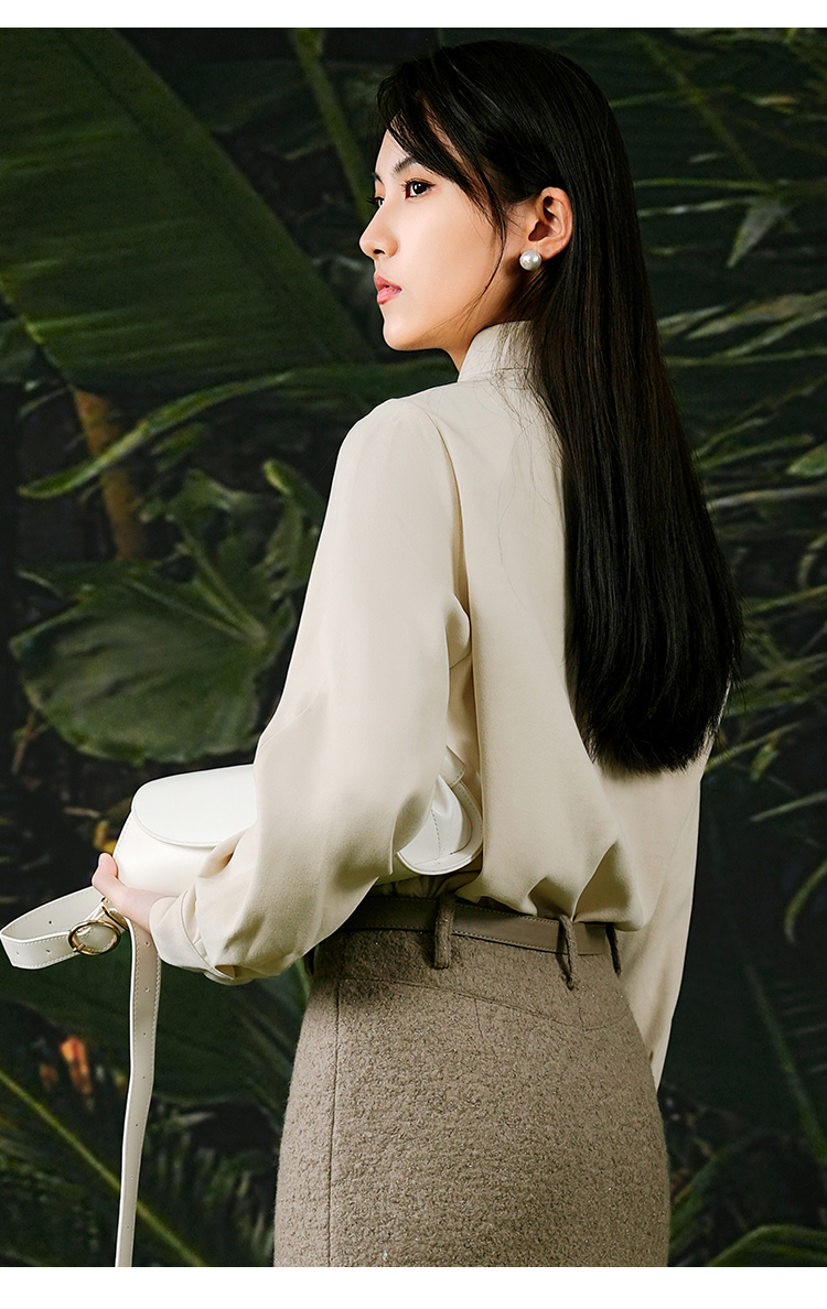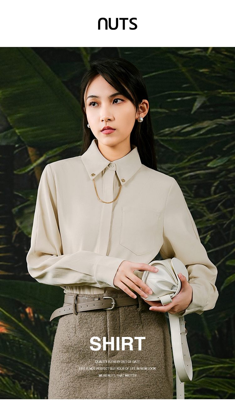 NUTS春秋新款职业通勤气质百搭翻领宽松显瘦长袖衬衫女411011353