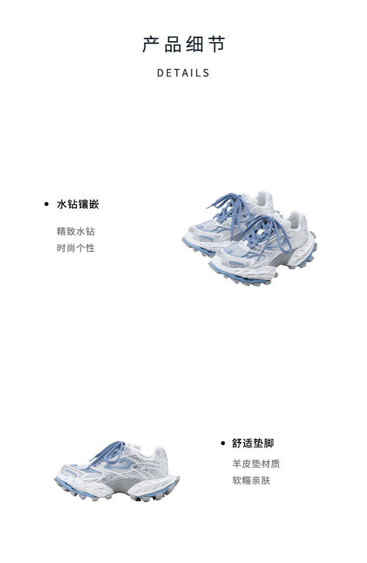 Westory2025年夏季超轻系带厚底极细透网的海盐水钻运动款老爹鞋W25CM75551
