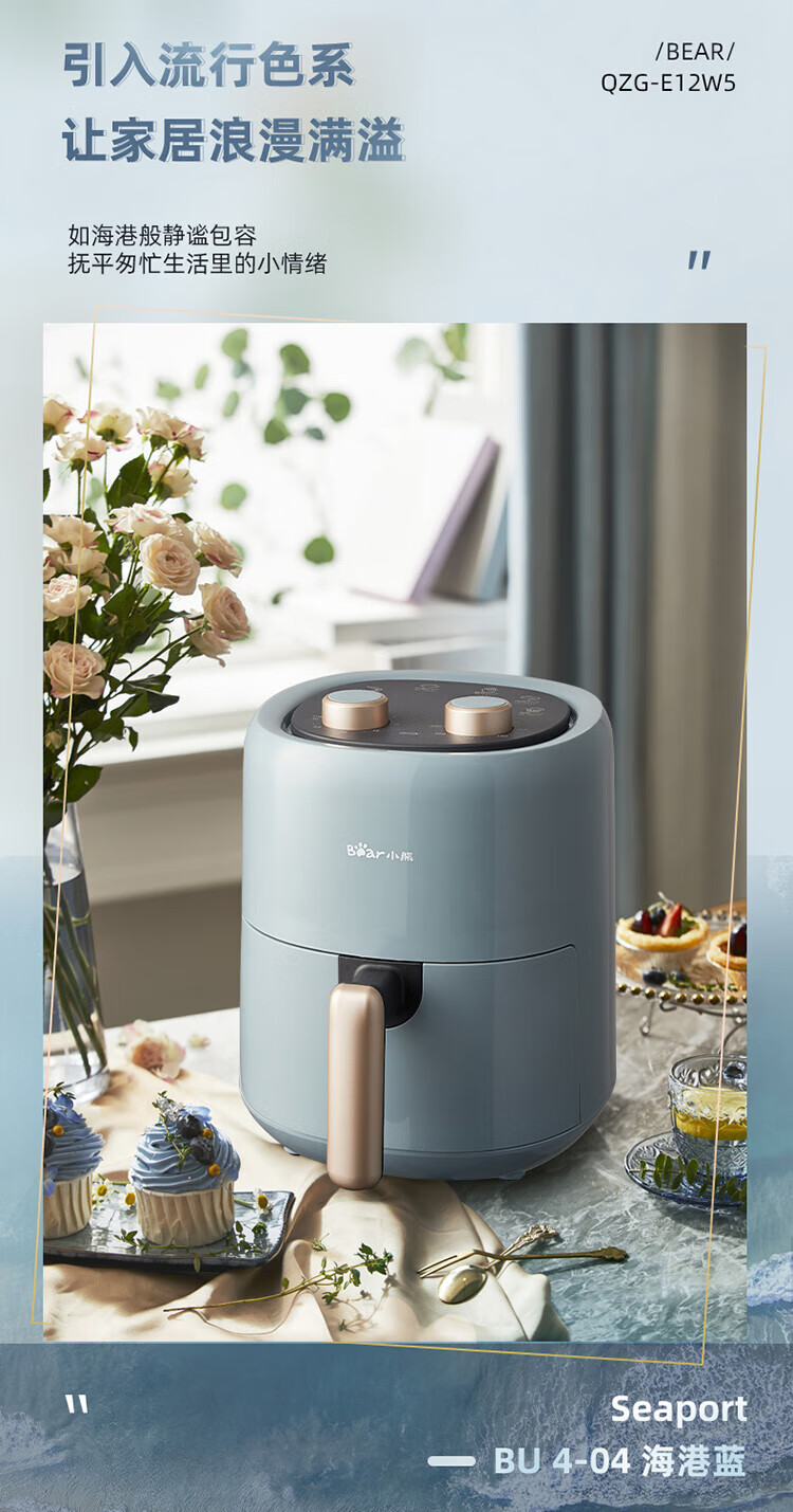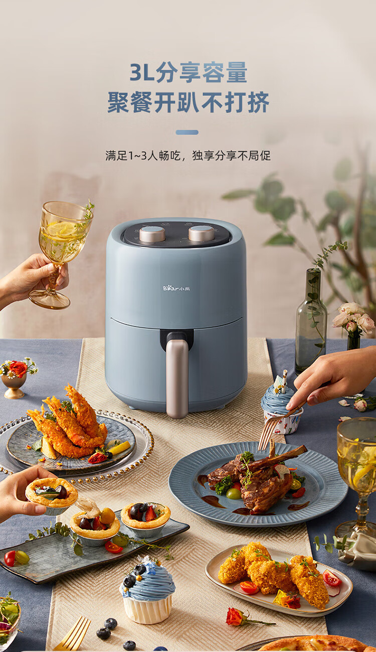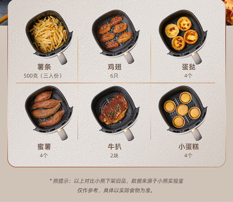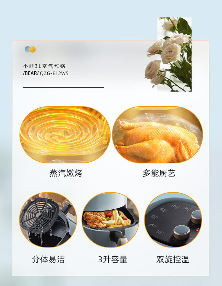 小熊(Bear)空气炸锅 家用多功能锅3L 微电脑触控电炸锅 微蒸汽空气烤可拆卸易清洗QZG-E12W5