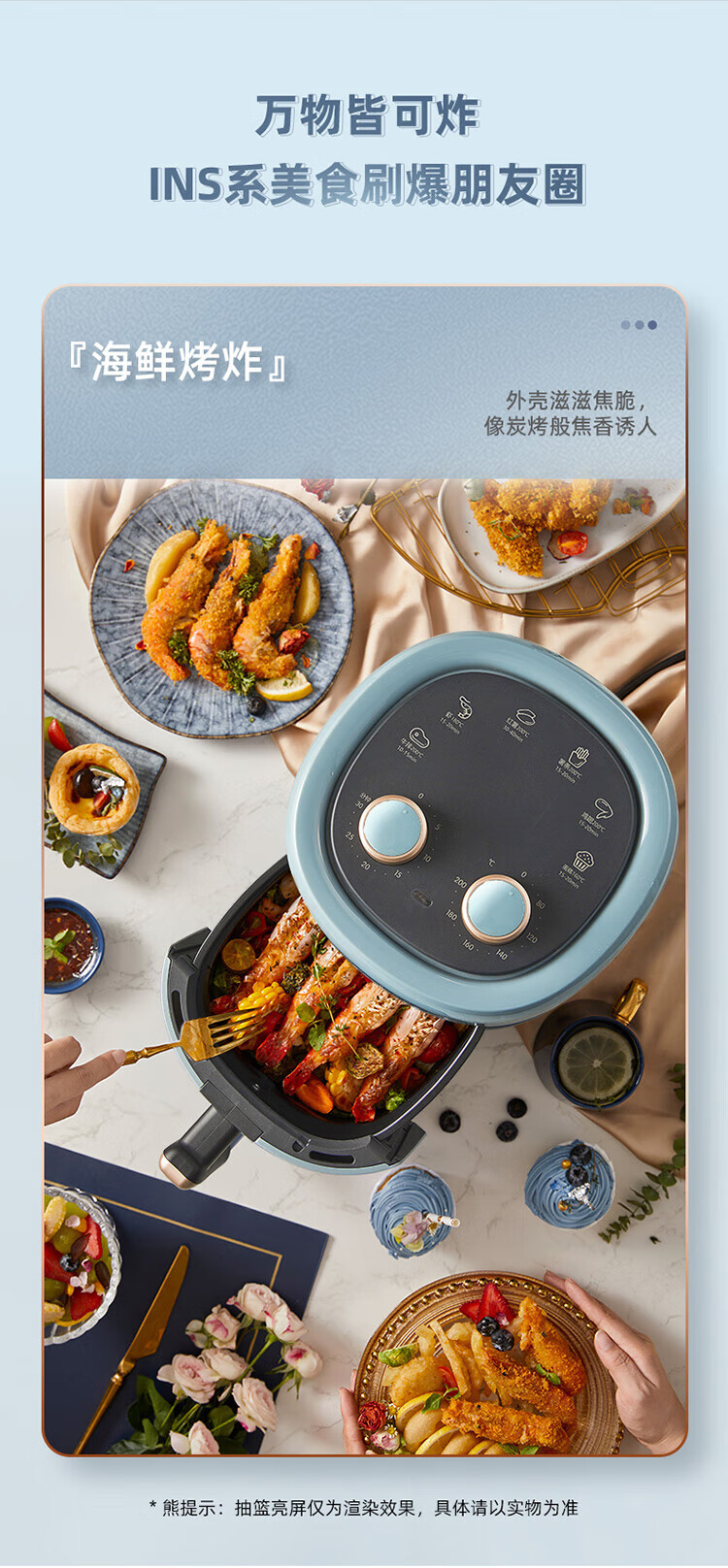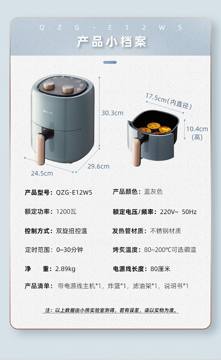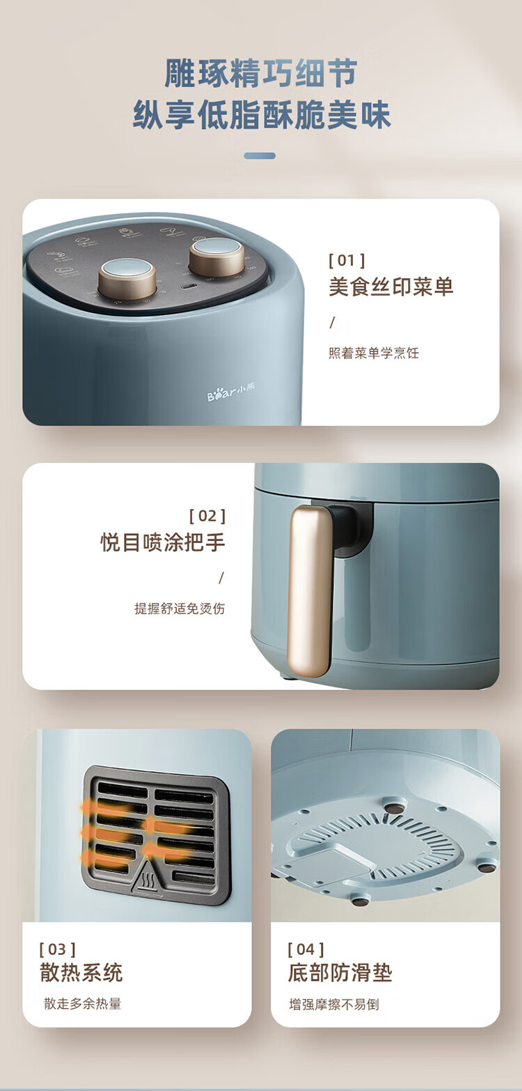 小熊(Bear)空气炸锅 家用多功能锅3L 微电脑触控电炸锅 微蒸汽空气烤可拆卸易清洗QZG-E12W5