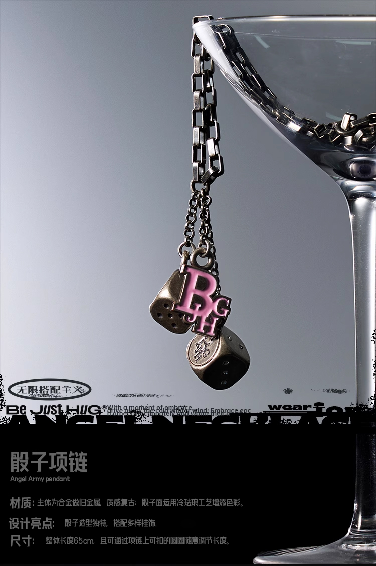 BJHG不计后果 做旧复古骰子项链男款个性潮流百搭高级感链子配饰