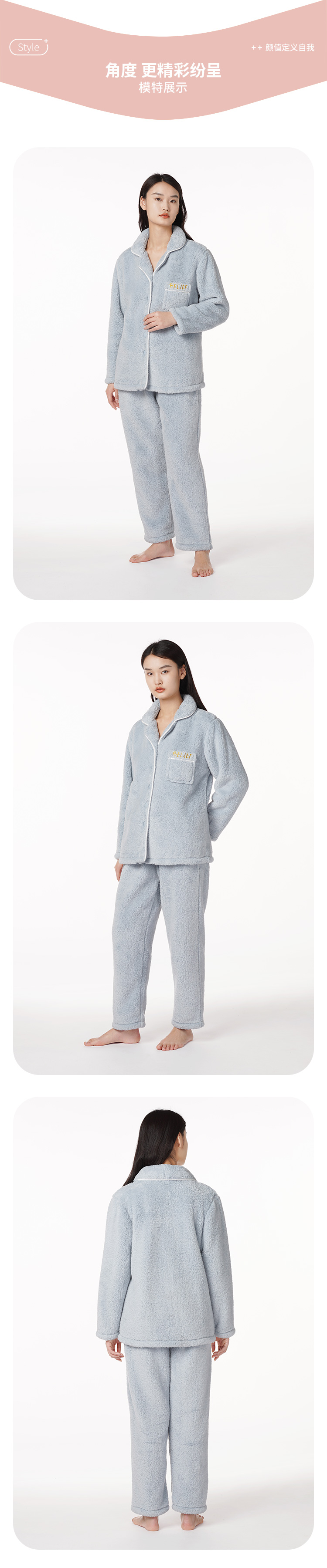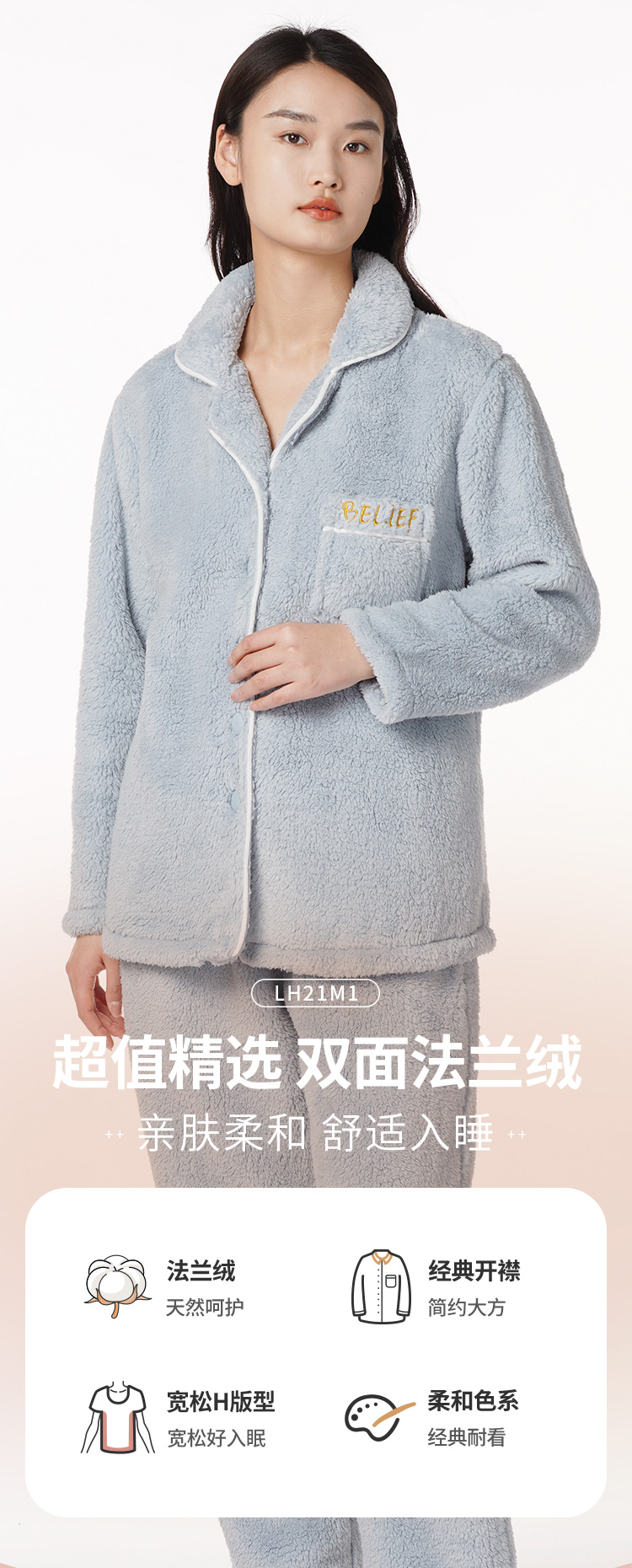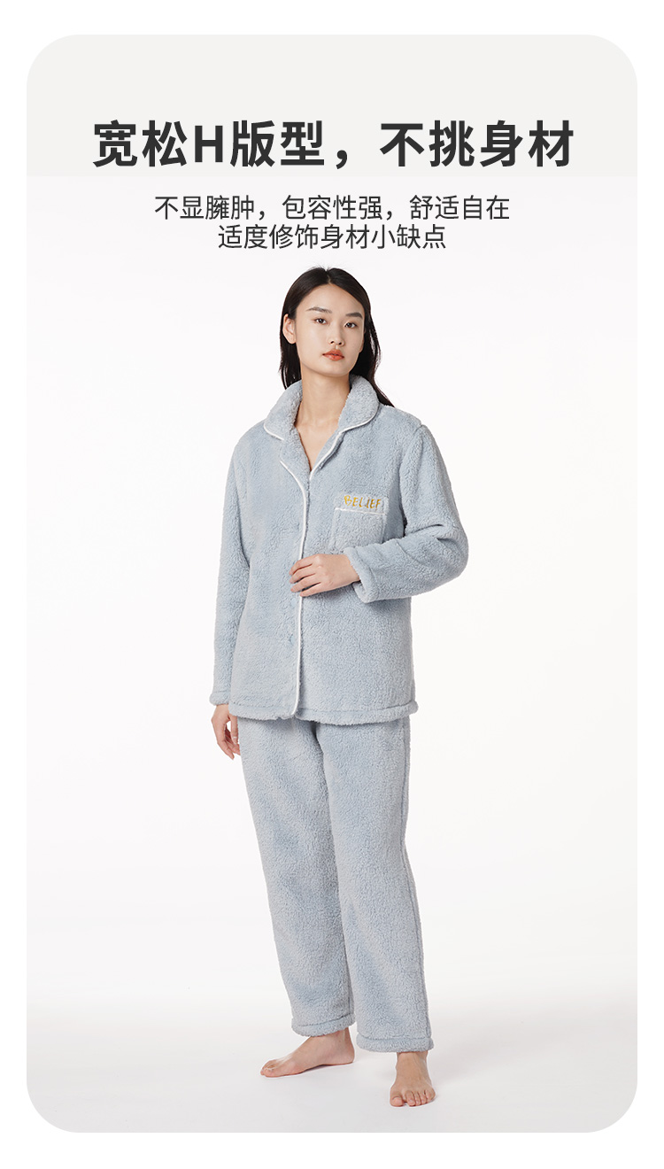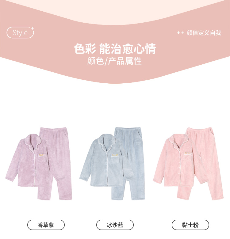 都市丽人生活家居女士特价法兰绒套装双面法兰绒厚家居服长袖睡衣LH21M1