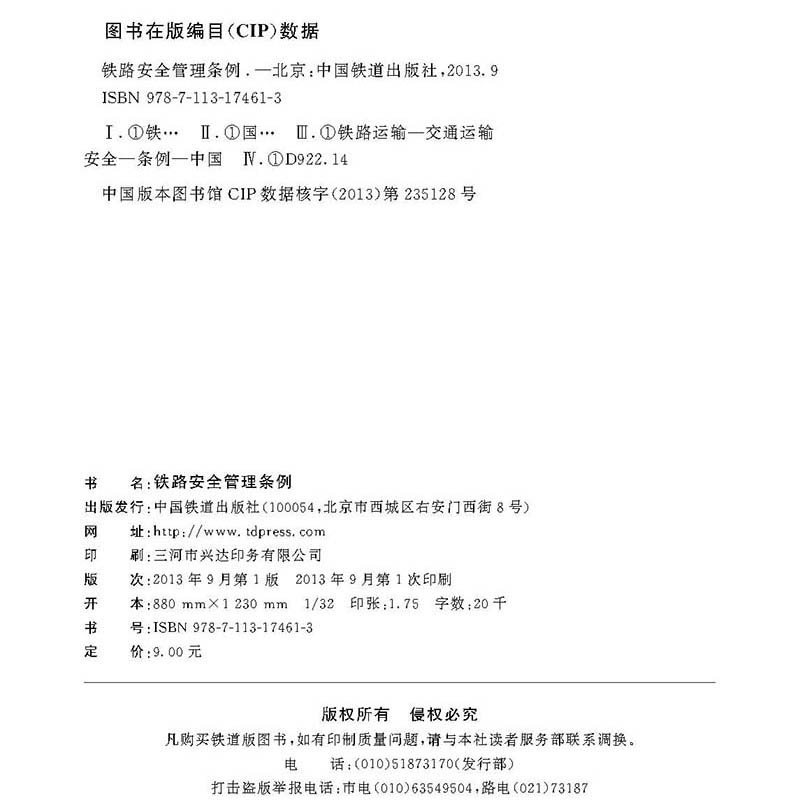 978-7-113-17461-3铁路安全管理条例[1-6](国务院令639号)