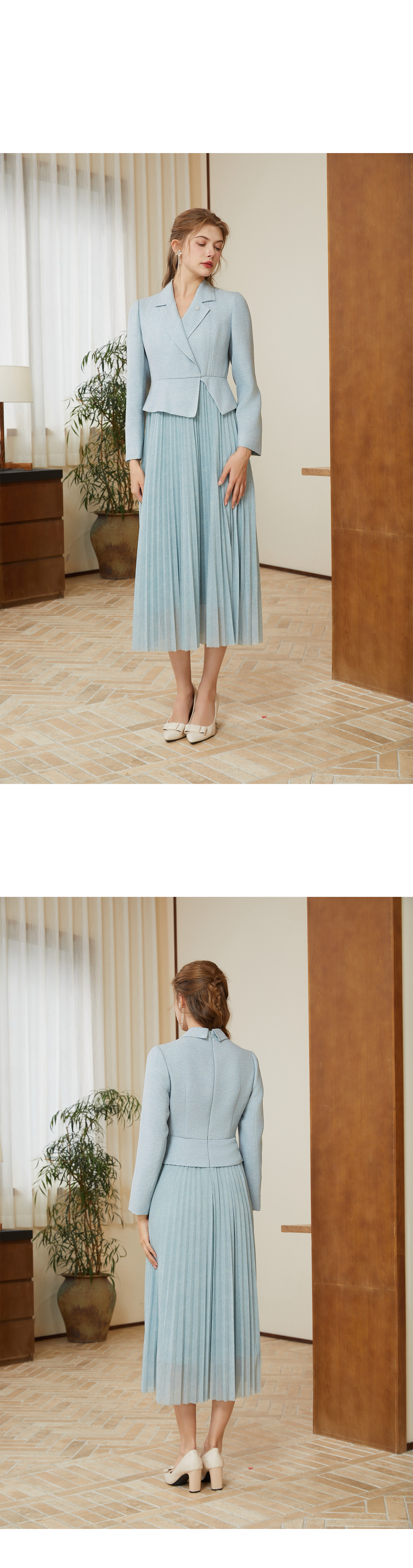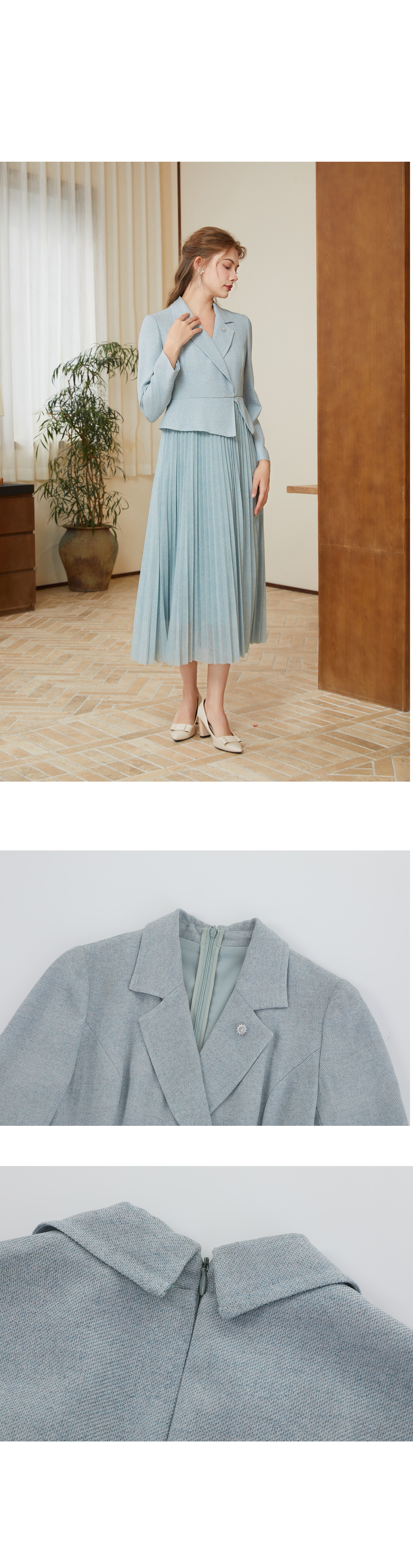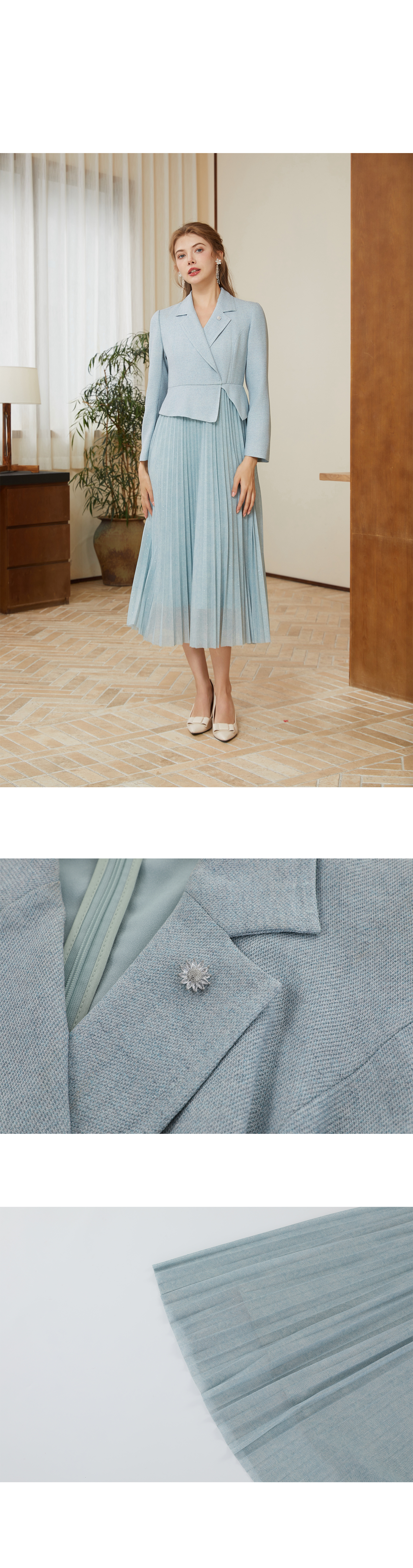 司歌假两件西装连衣裙翻领长袖春秋压褶中长裙A921184X