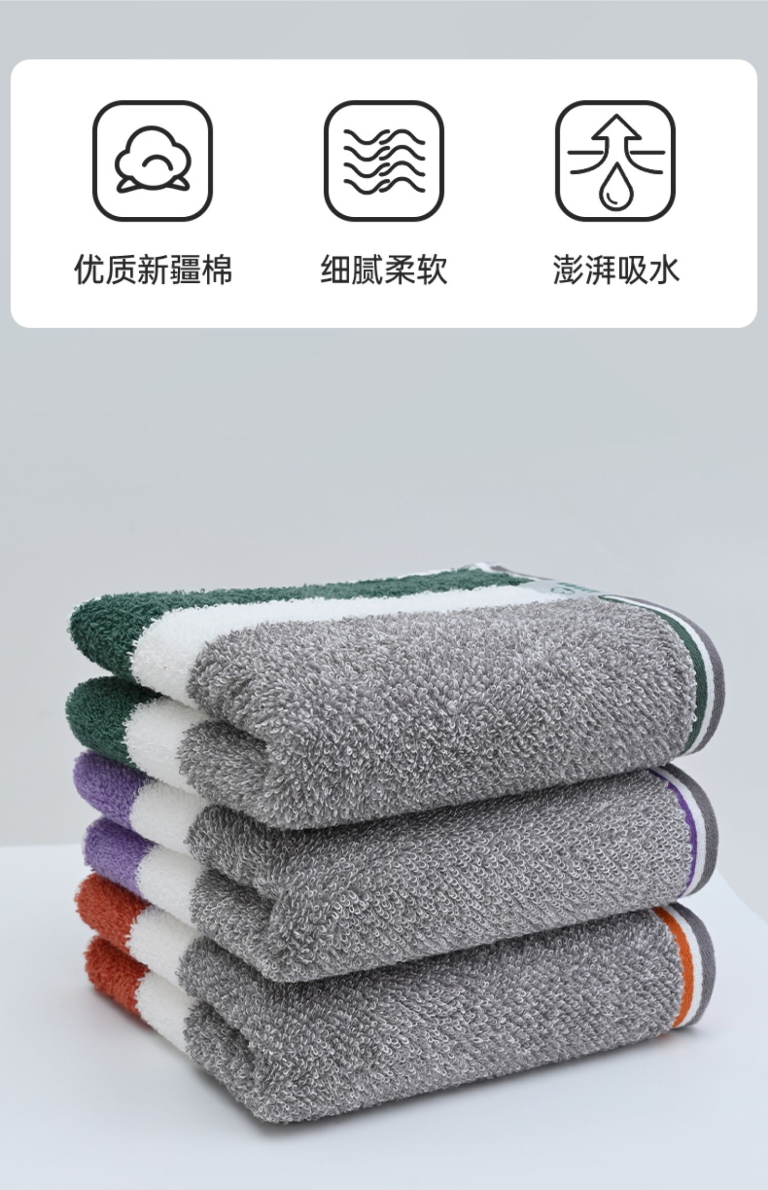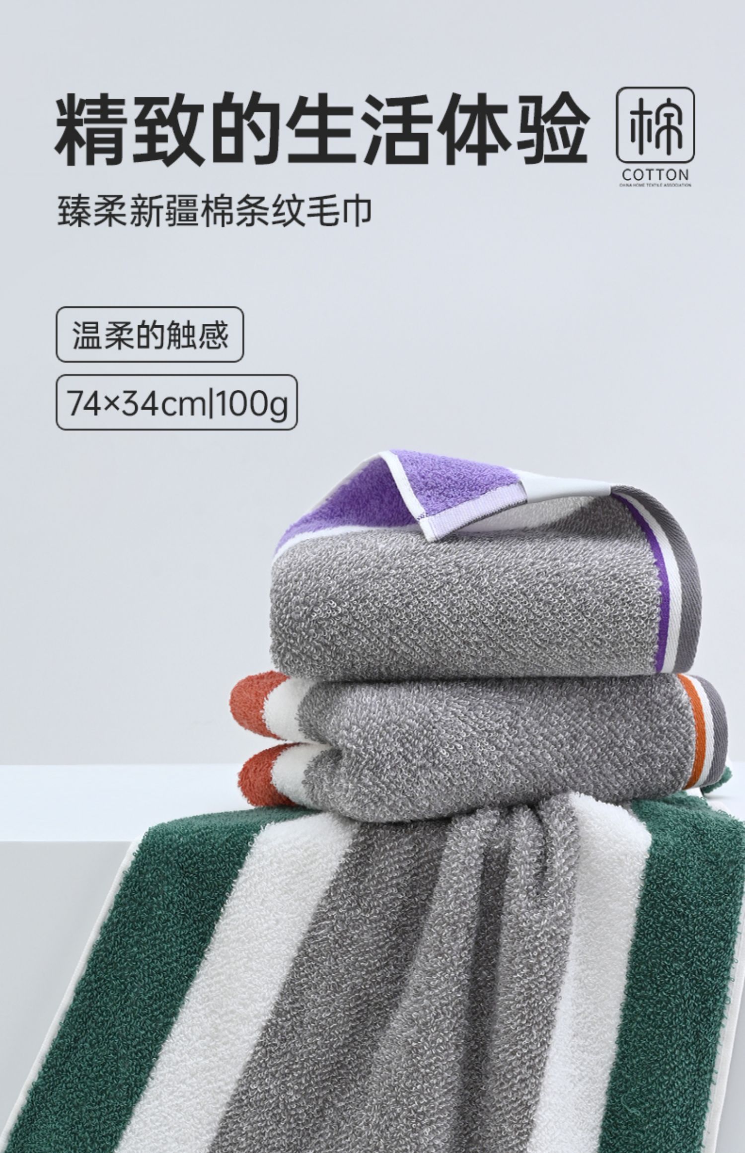 洁丽雅纯棉A类条纹毛巾2025新款新疆棉家用洗脸巾全棉吸水柔软
