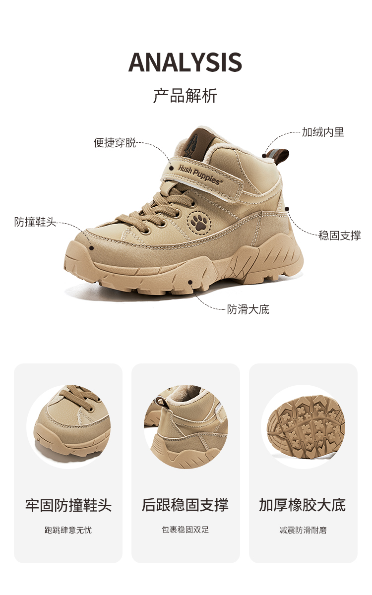 暇步士冬季加绒保暖加厚高帮儿童休闲鞋HP3562