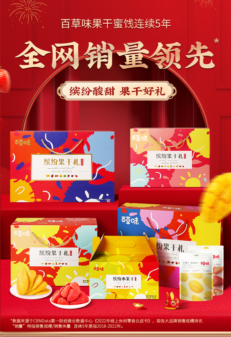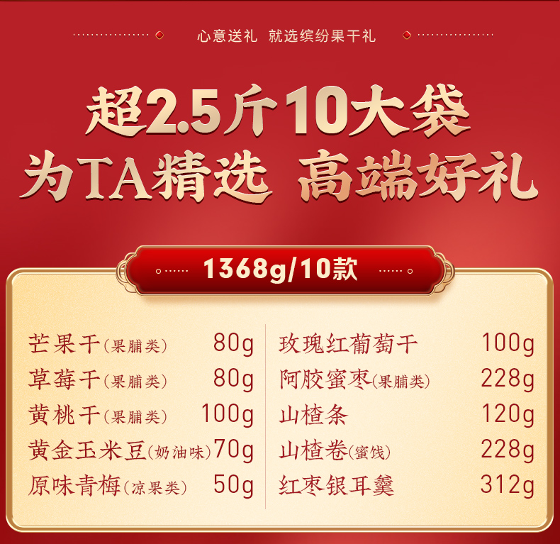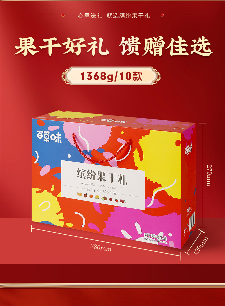 百草味缤纷果干礼1368g纯果干春节礼盒-XL