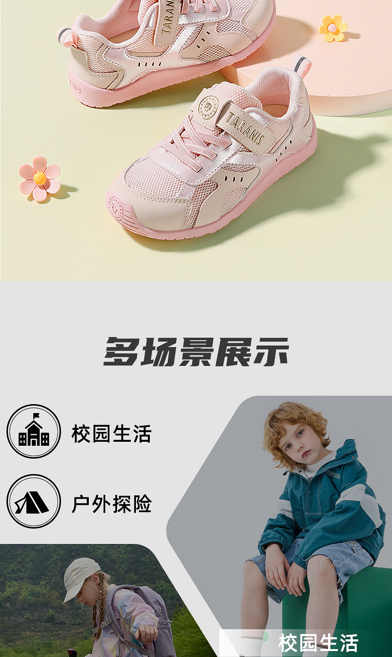 泰兰尼斯秋季新款儿童幼儿园鞋男童板鞋轻便软底休闲鞋女童运动鞋 T02X5C6872