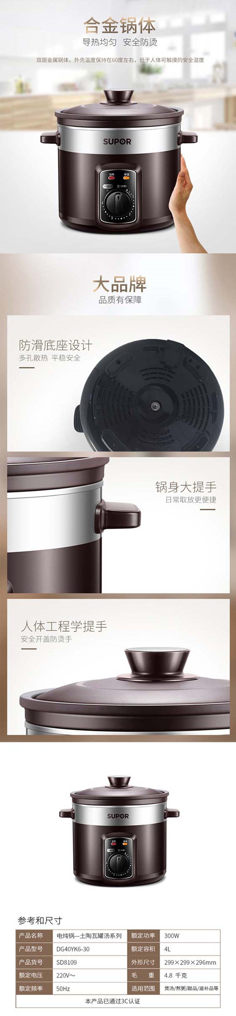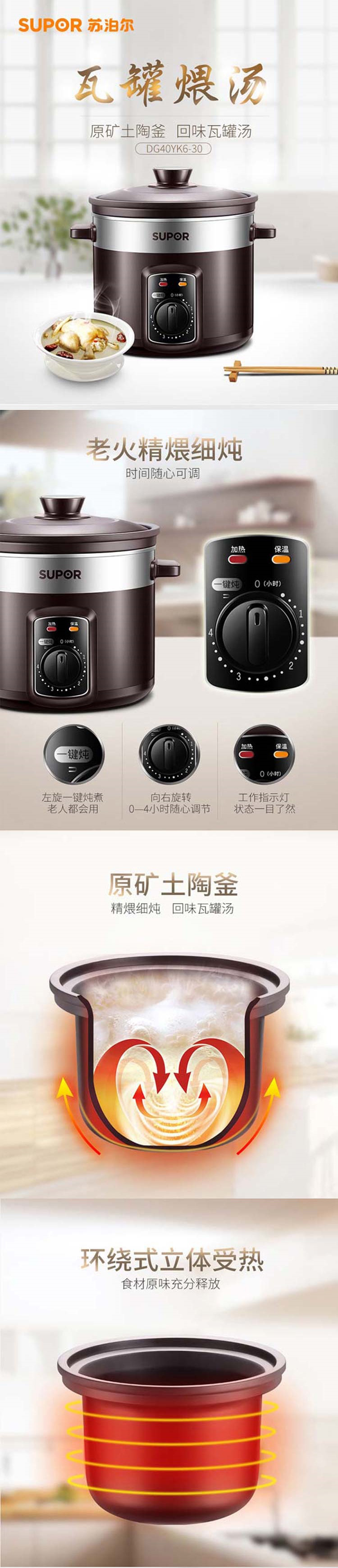 苏泊尔电炖锅紫陶4L DG40YK6-30