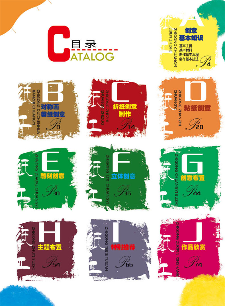 《幼儿园纸工创意》为幼儿园创意系列,主要培养幼儿从生活中发现创意。纸工创意基础篇主要介绍了基本工具及材料、基本方法及步骤,简单的剪纸图案。然后是教案类练习,有主题墙的装饰、节日生活类、蔬菜水果类、碎纸马赛克类等剪纸贴。后是撕纸创意贴和作品欣赏。一方面是培养幼儿的构成组织能力,另一方面是给予幼儿园教师教学的指导。