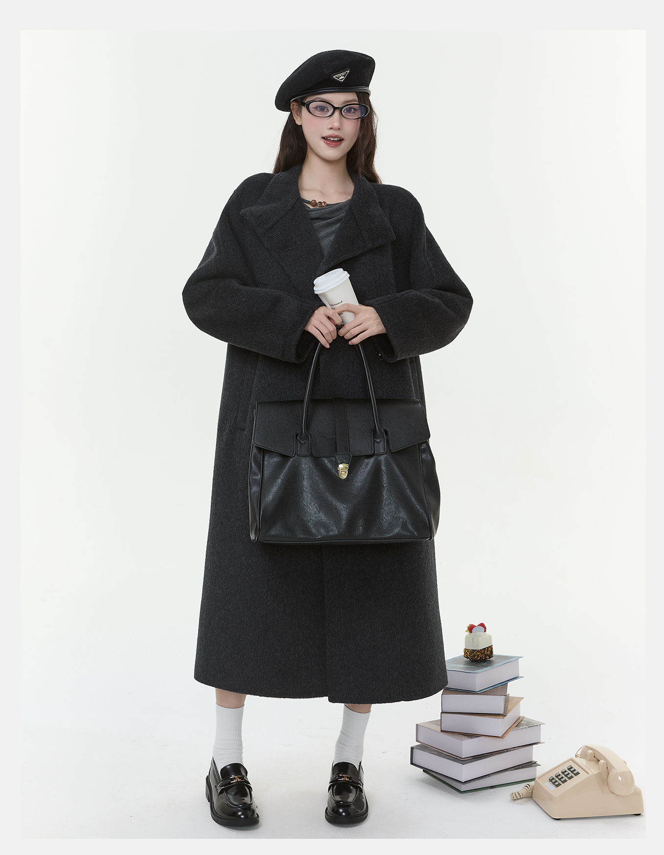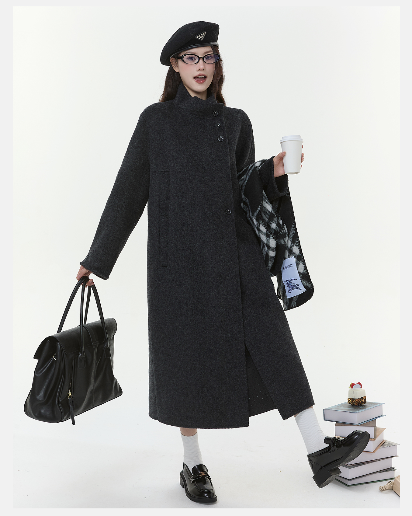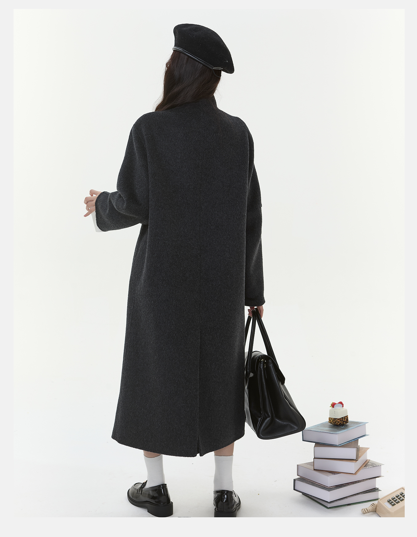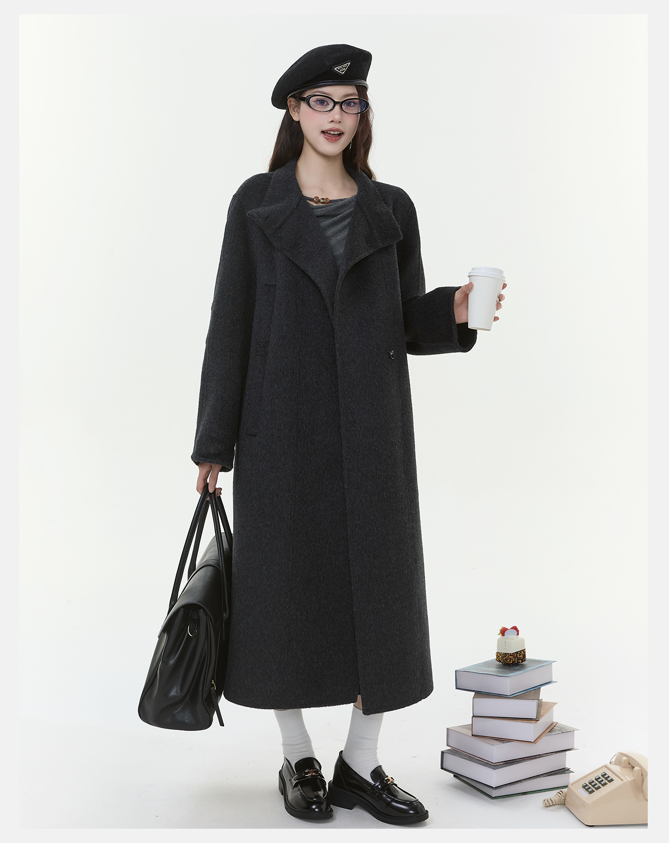 P&X设计师女装2025冬季毛呢外套双面呢长款大衣825421107 深灰