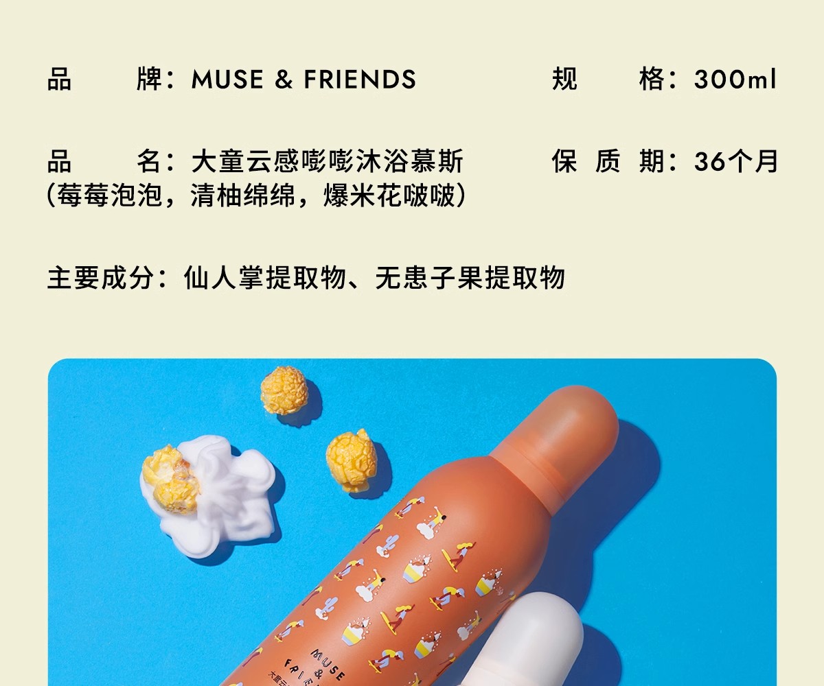 MUSE&FRIENDS 大童云感嘭嘭沐浴慕斯 儿童沐浴露小奶芙慕斯泡泡浴 300ml 5岁+