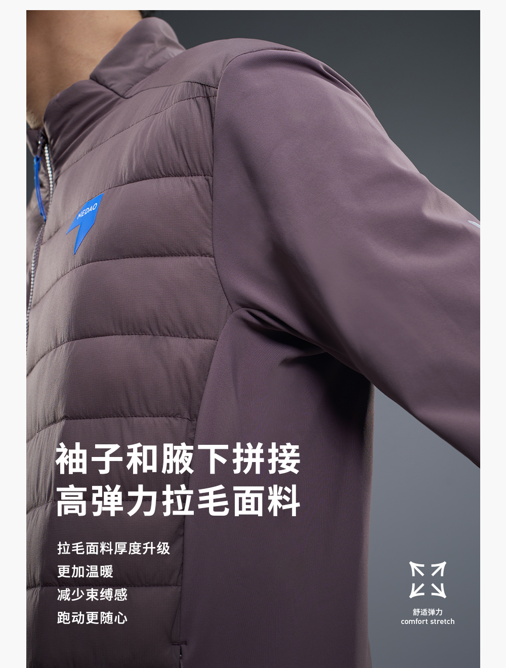 内道新品聚能球立领拼接棉服保暖防风自收纳男户外运动跑步棉服外套
