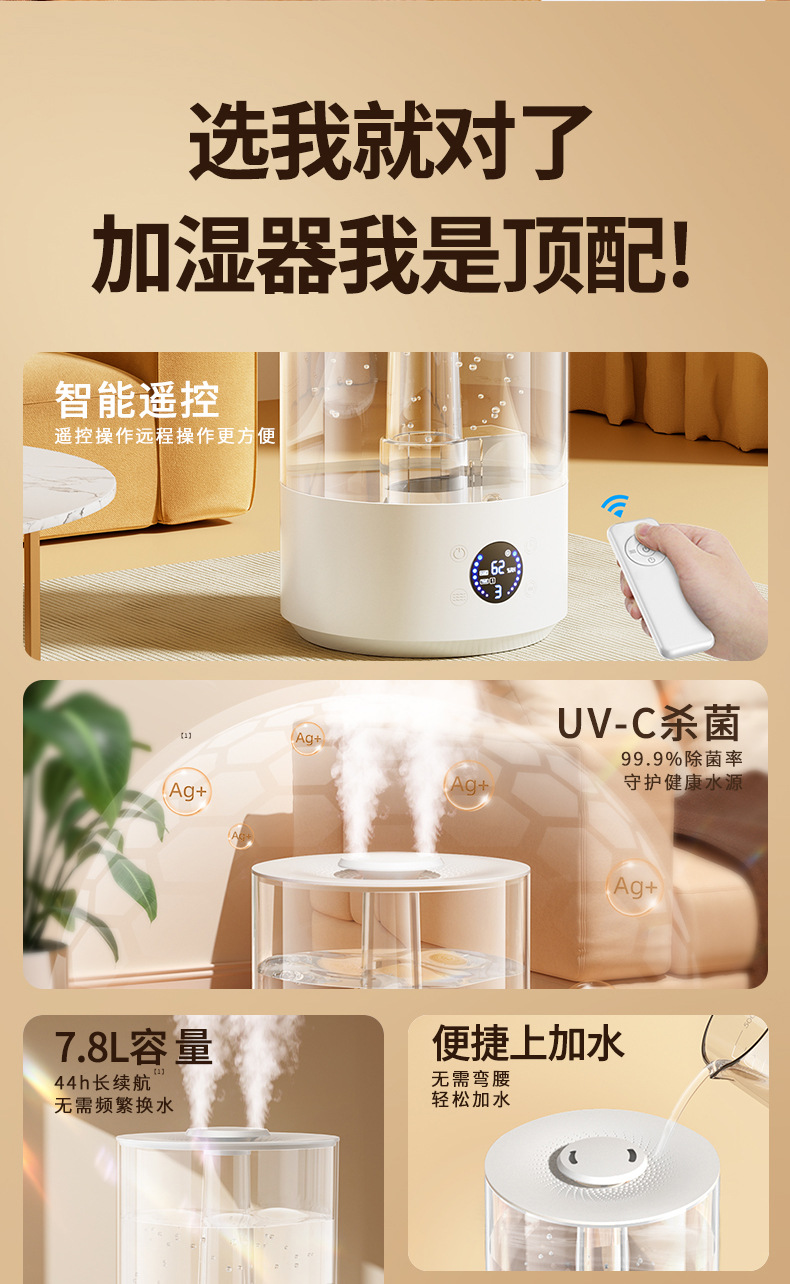 秋冬【加湿器家用】大雾量桌面双喷香薰机 空调卧室补水保濕空气净化器