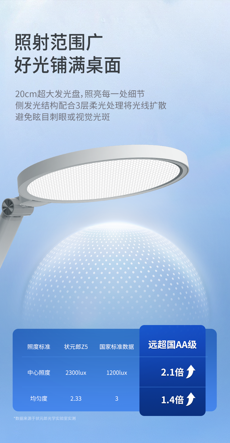 状元郎护眼台灯儿童学习专用防近视写字阅读宽面智能感应台灯