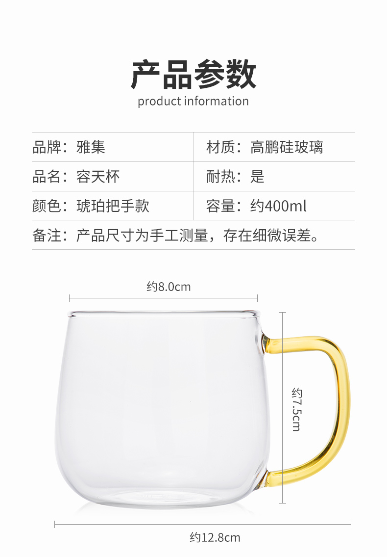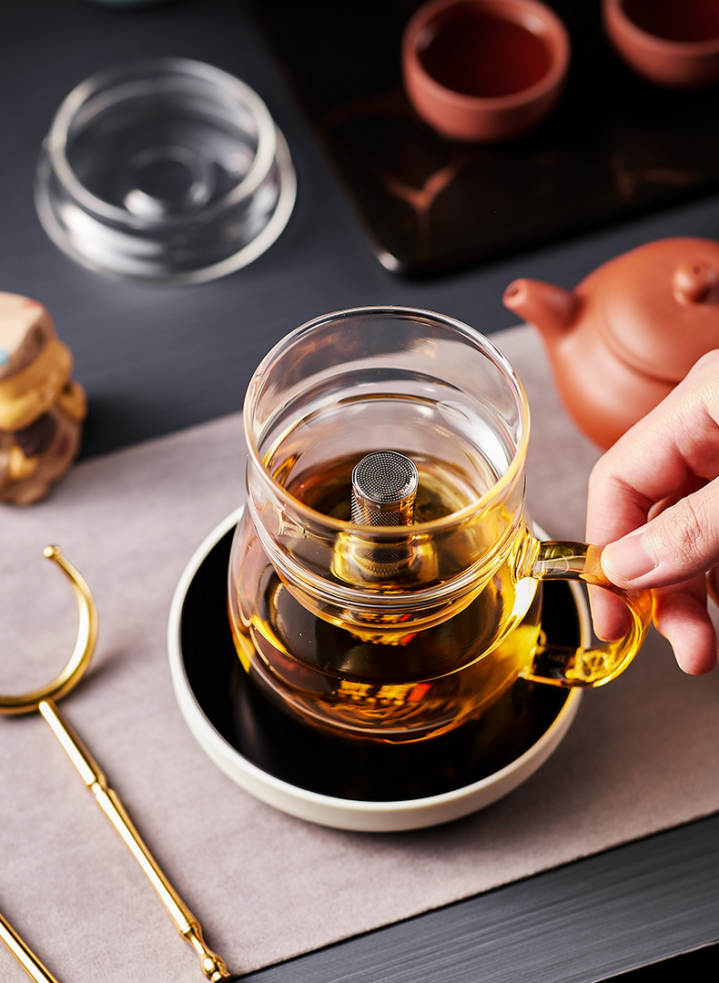雅集茶具容天杯400ml琥珀把套装(带泡茶灵器)