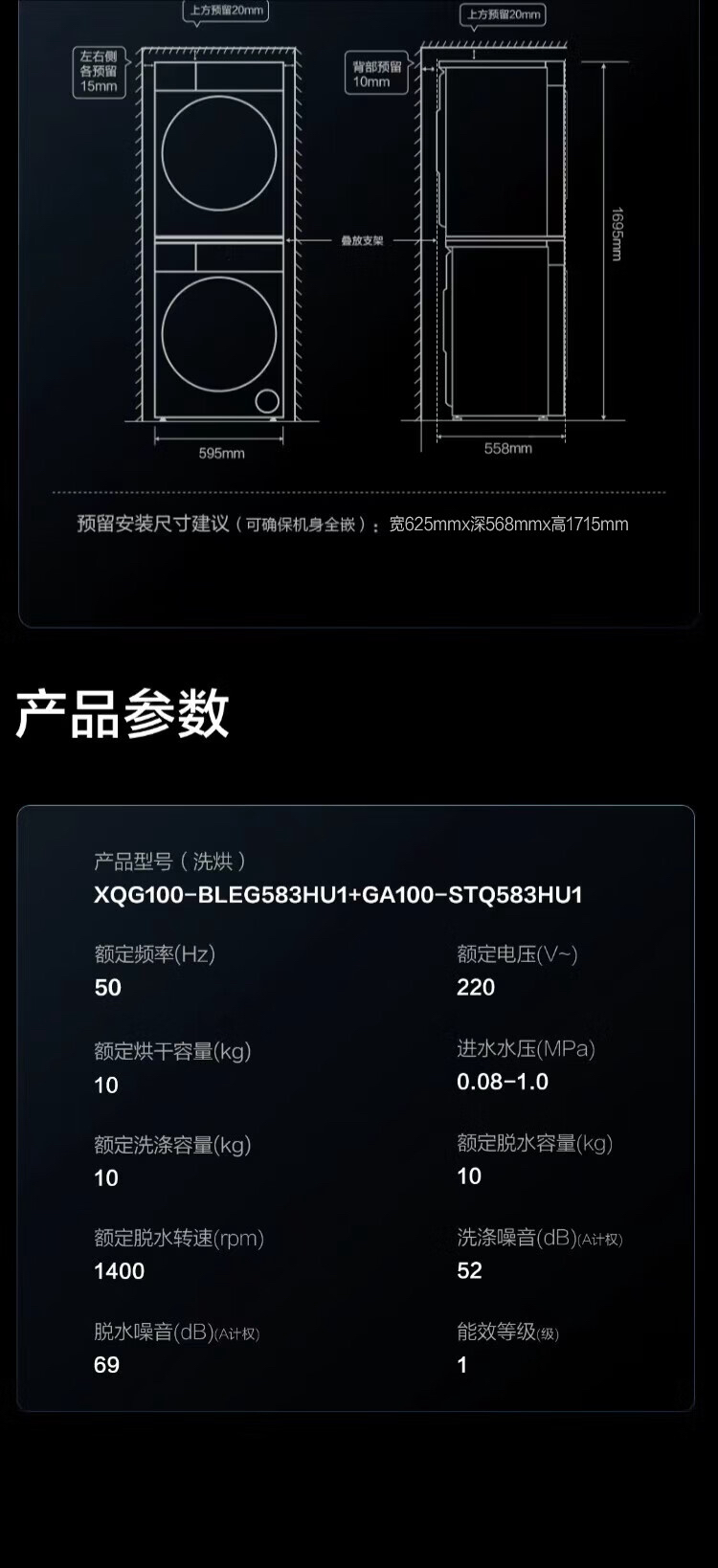 海尔(Haier)洗烘套装 XQG100-BLEG583HU1+GA100-STQ583HU1