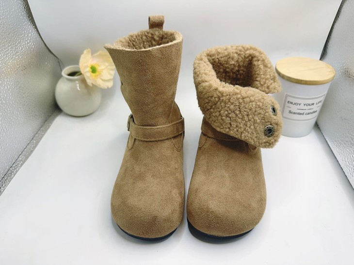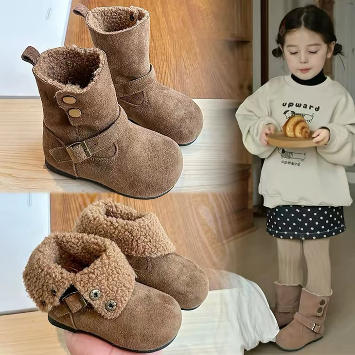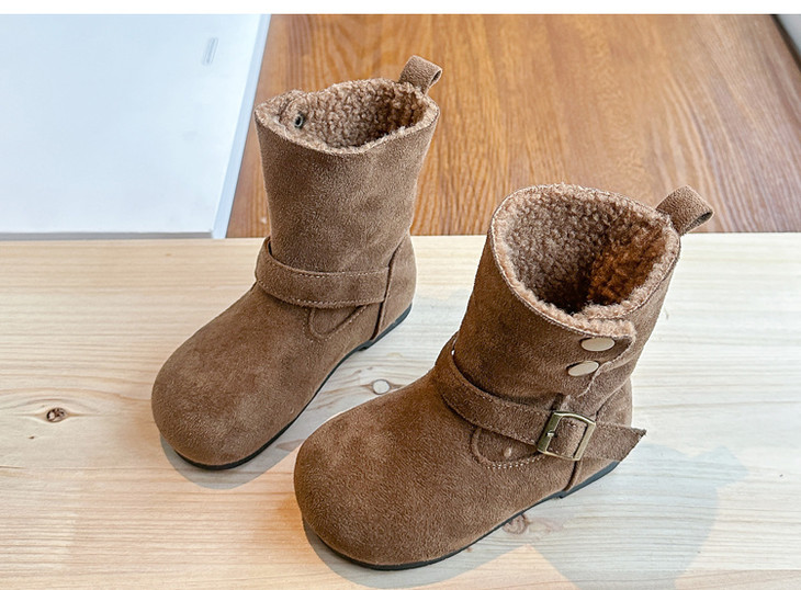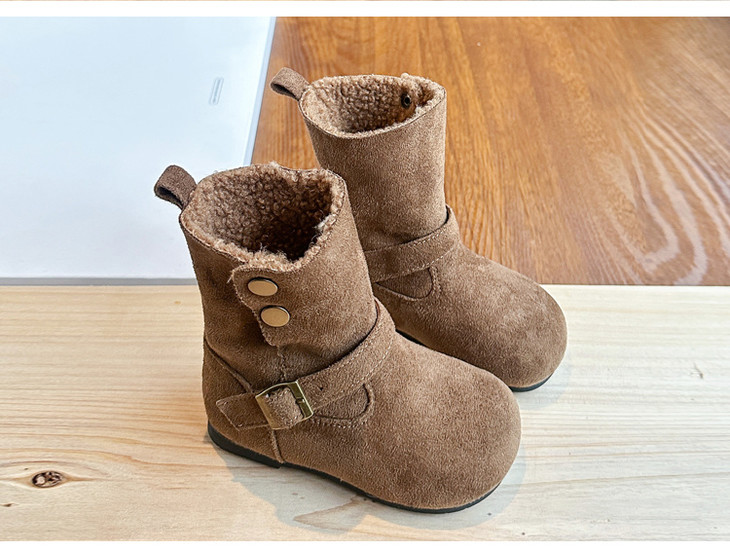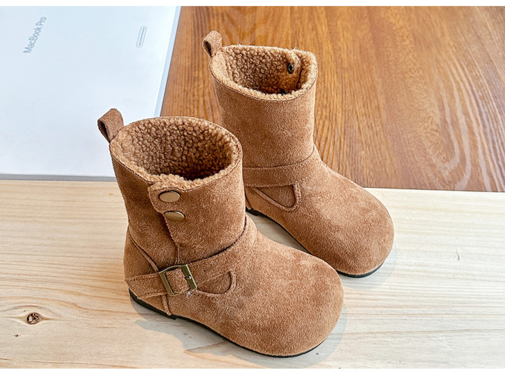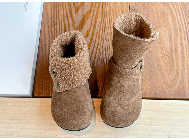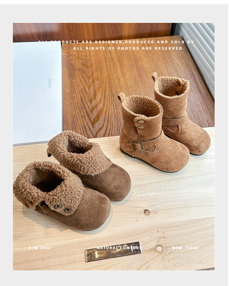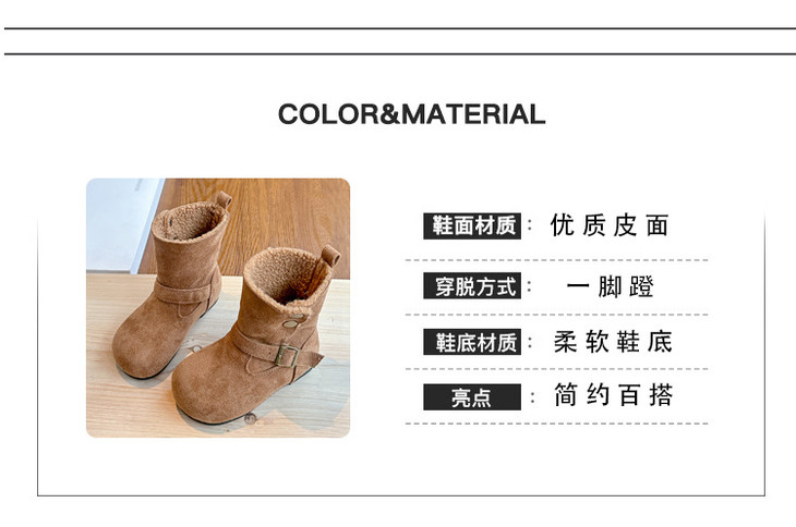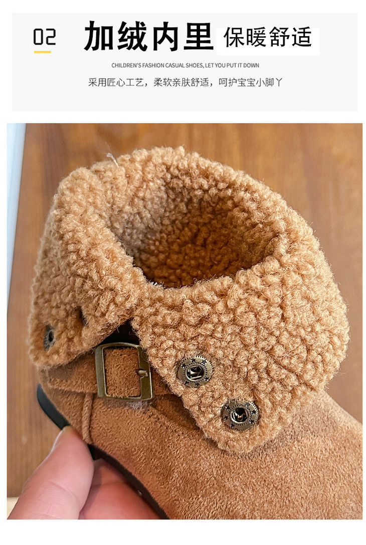 岁愿冬季新款儿童品质版两穿加绒保暖百搭绒面棉短靴