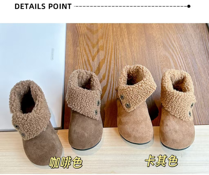 穿上秒变奶 fufu 的冬日萌娃~ 加绒内里裹满脚,上脚都是暖乎乎的! 咖啡,卡其,2色可选~都是秋冬的颜色~ 宝宝穿了都不想脱!买就对了!!