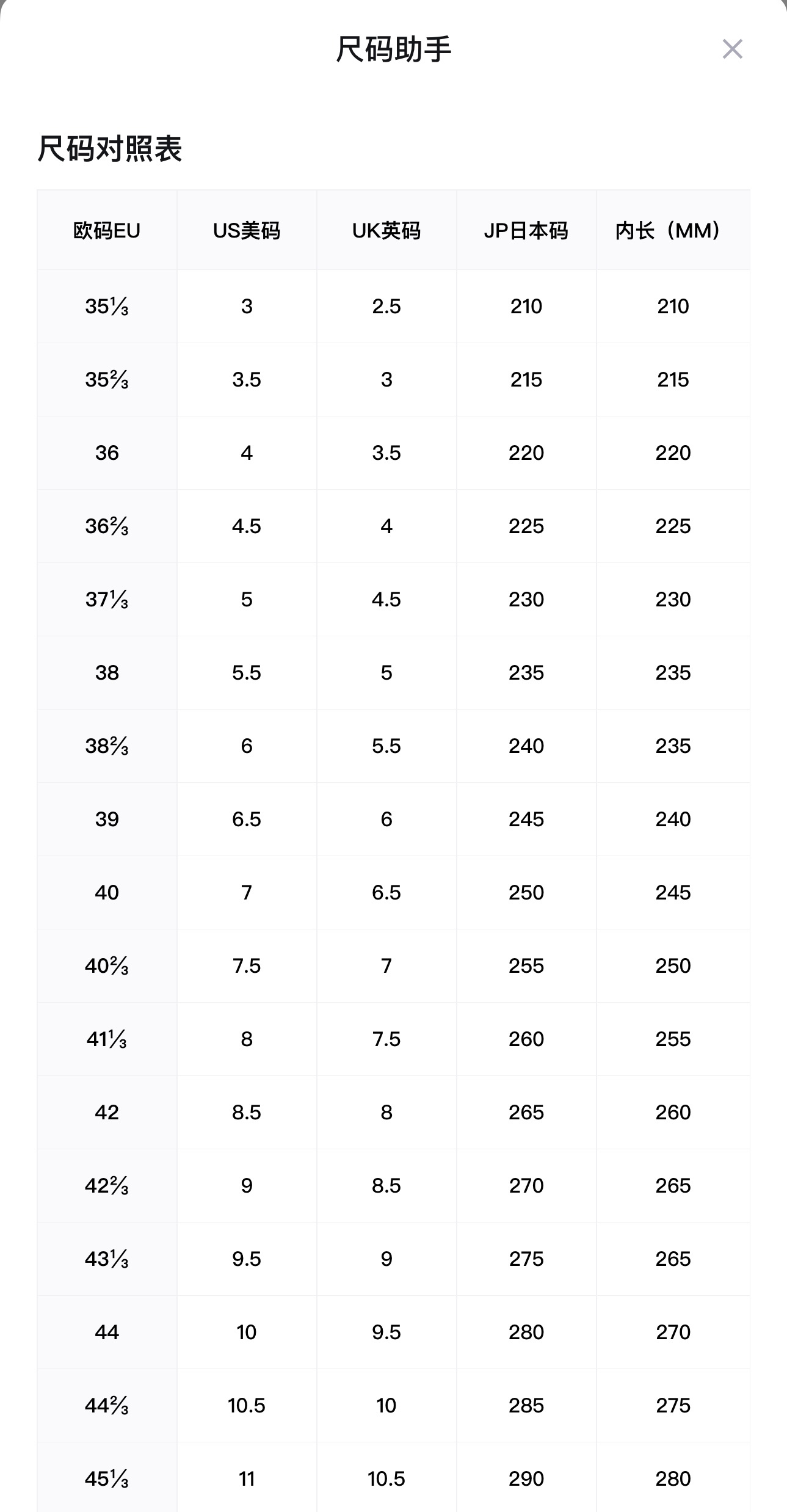 尺码标准,建议脚胖宽的宝们可以选大半码哦!!