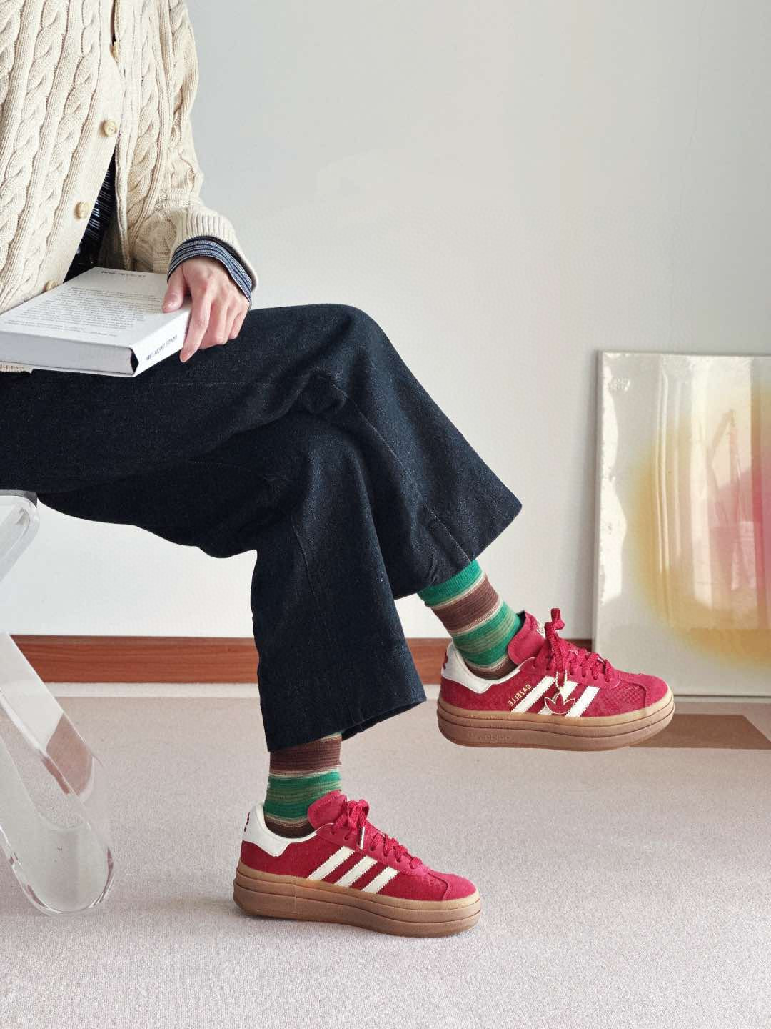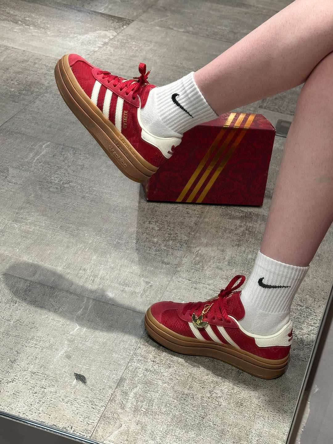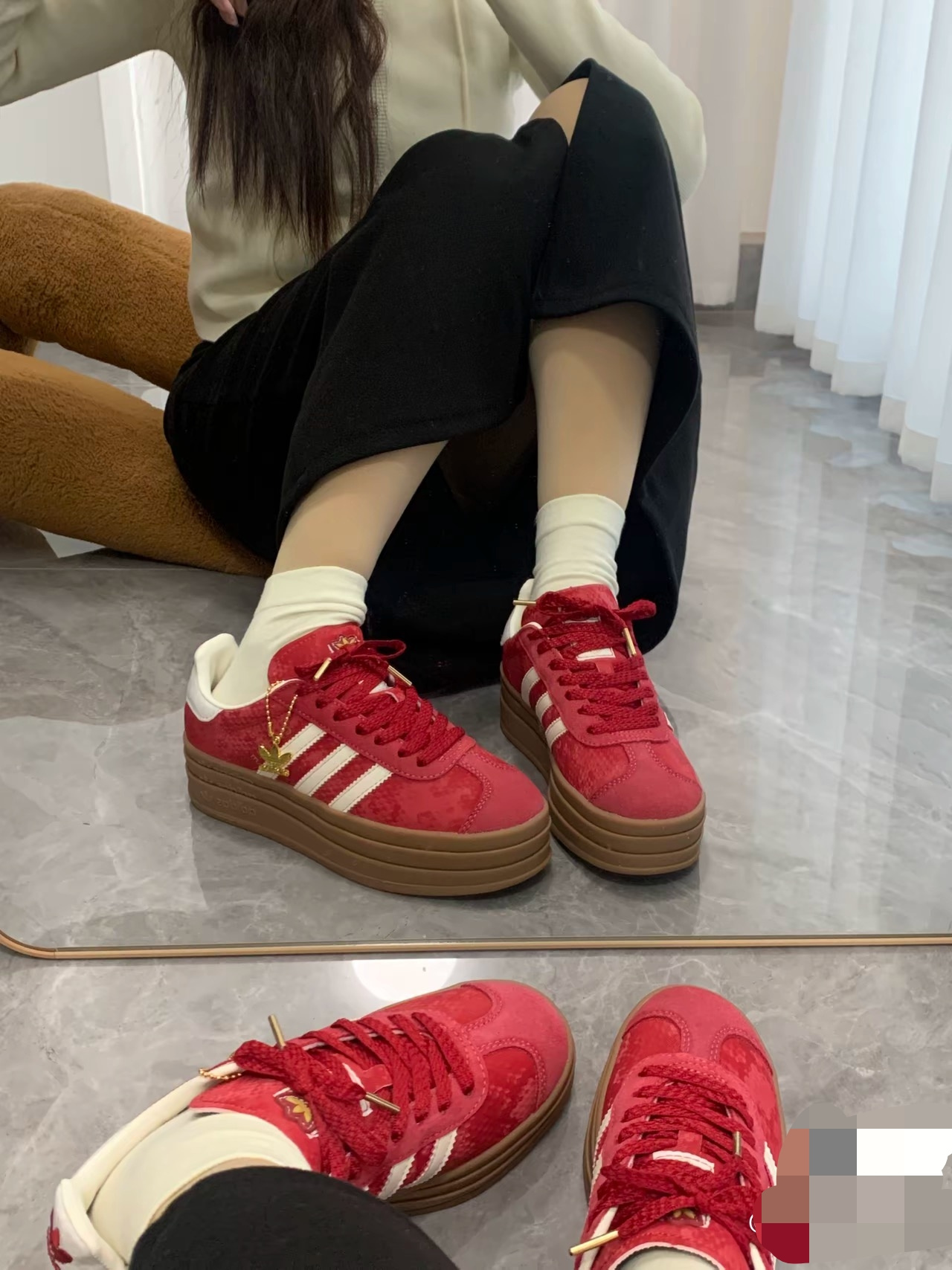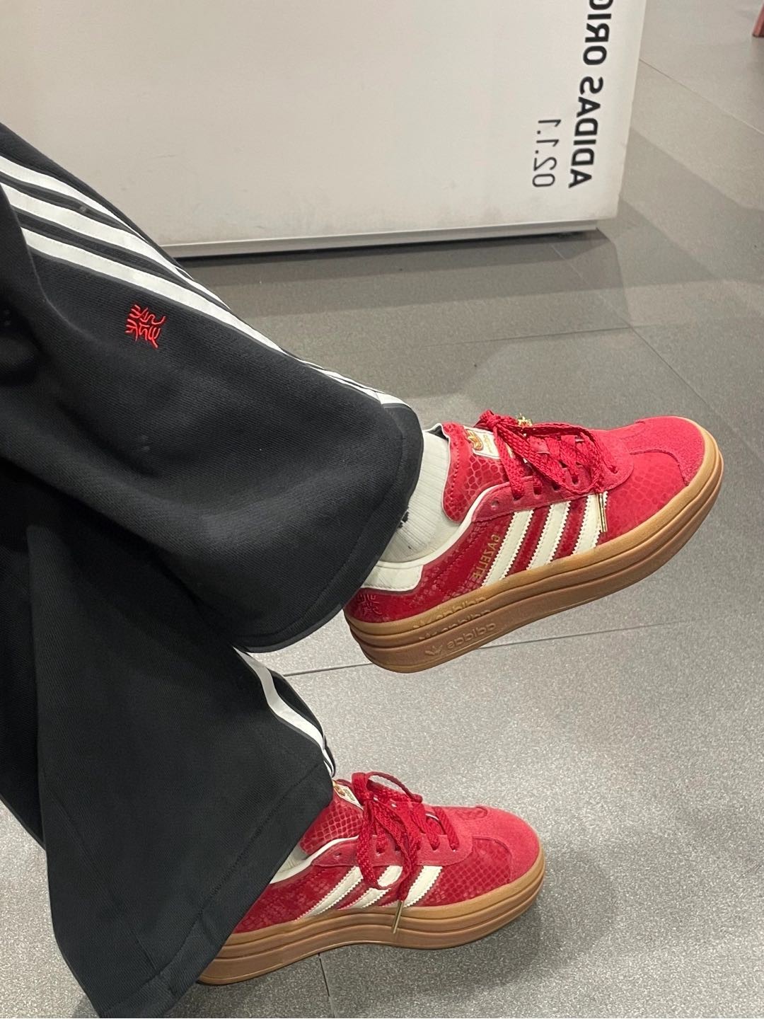 属实没想到会在鞋上纹蛇鳞这双全红厚底gazelle,