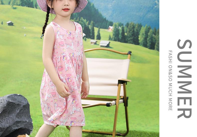 【PF】女童连衣裙儿童童装家居服宝宝绵绸夏装睡衣女孩沙滩公主裙子mc