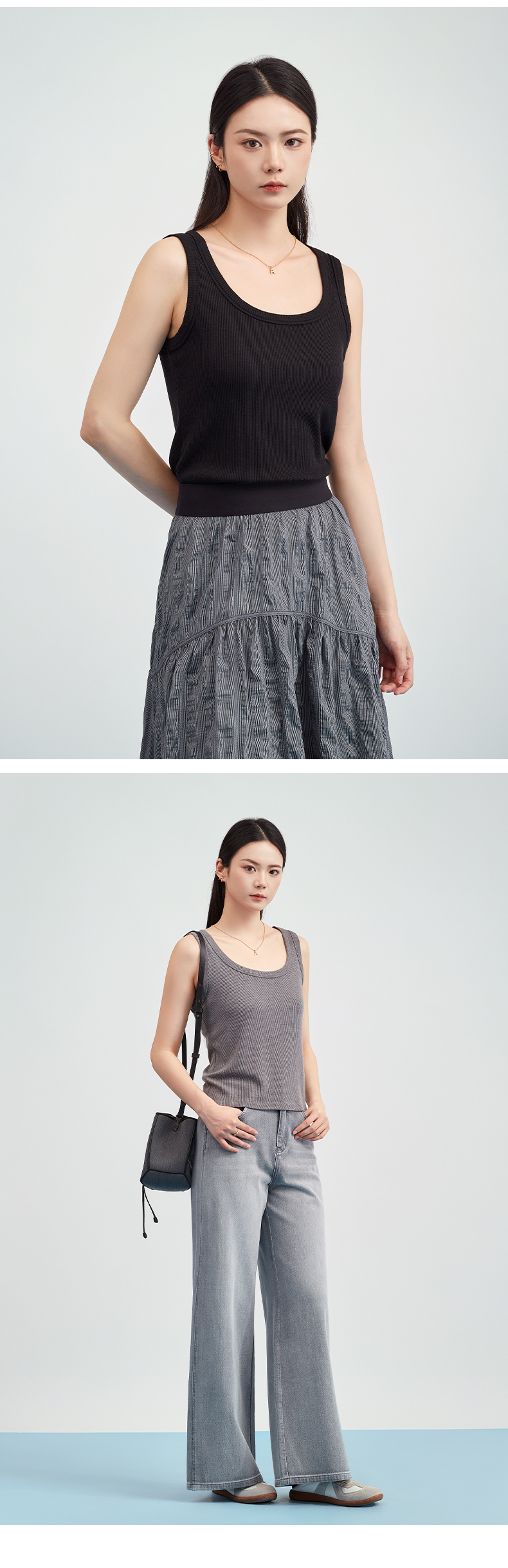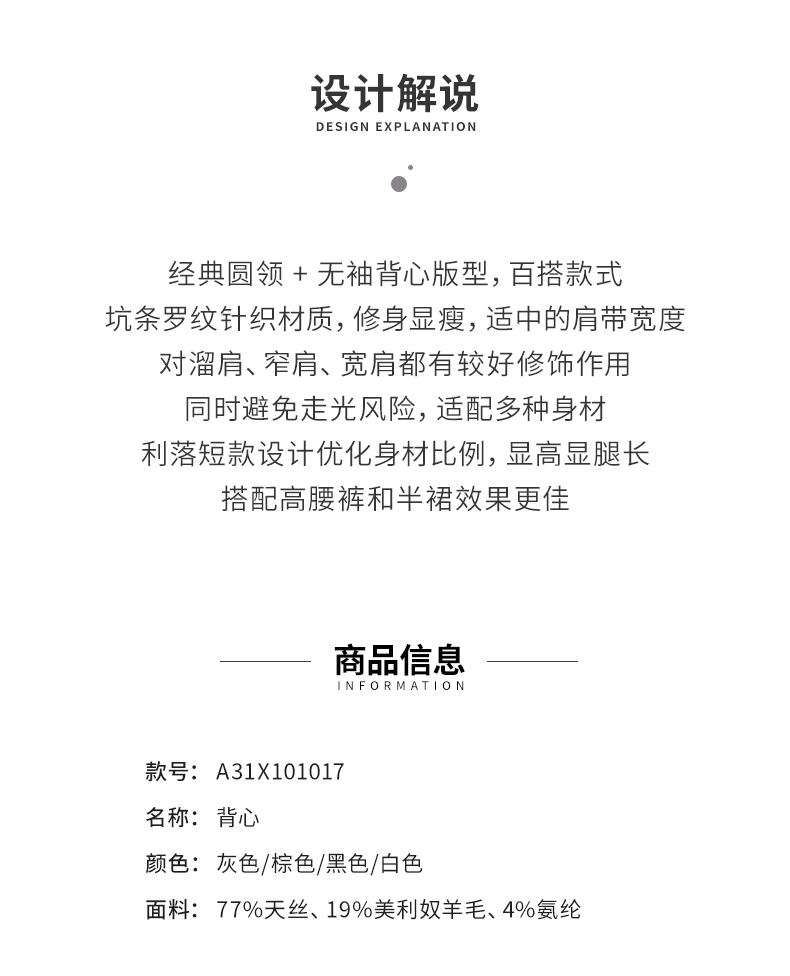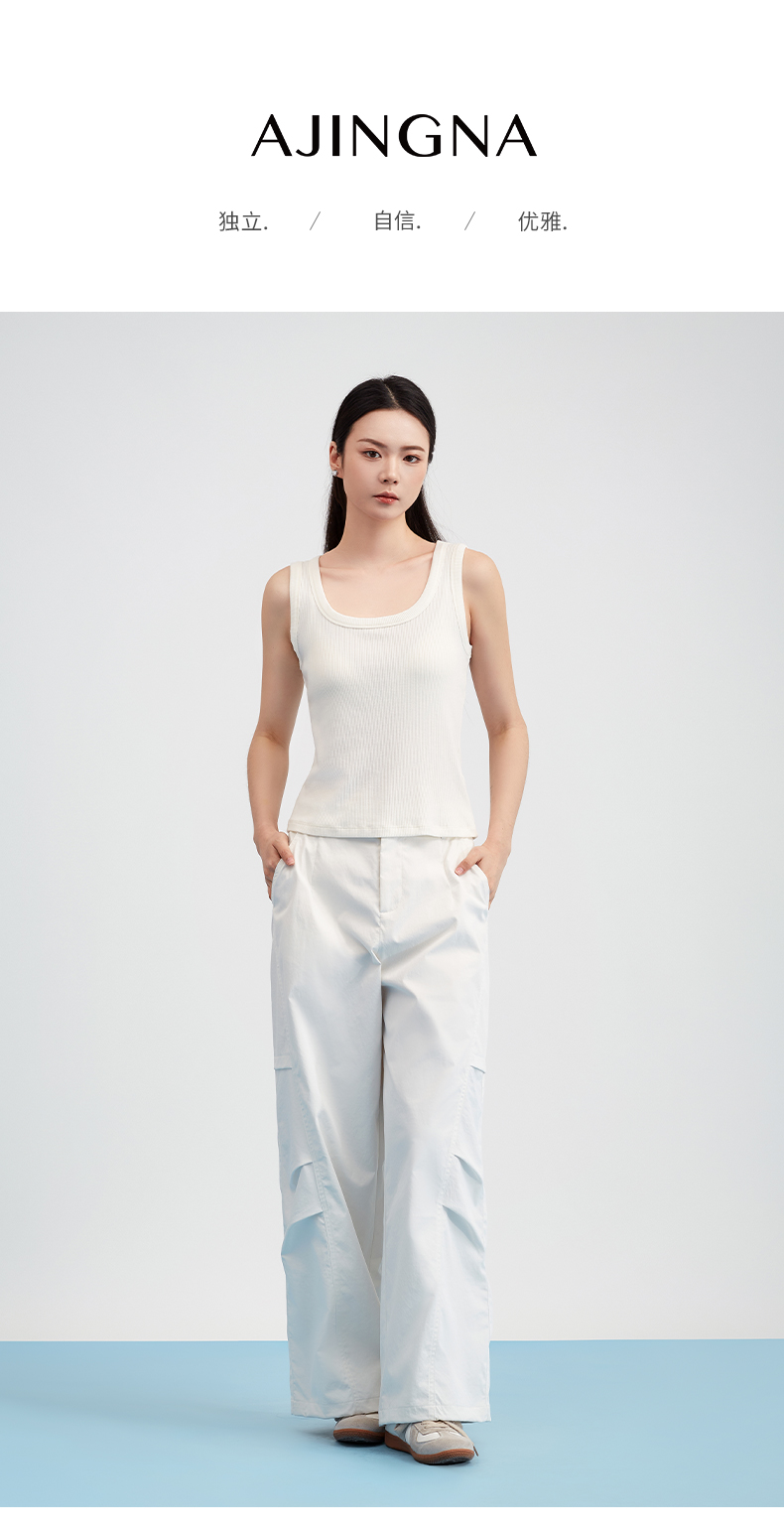 【商场同款】阿菁娜春夏季新款显瘦坑条针织背心罗纹修身贴合不勒经典圆领无袖A31X101017