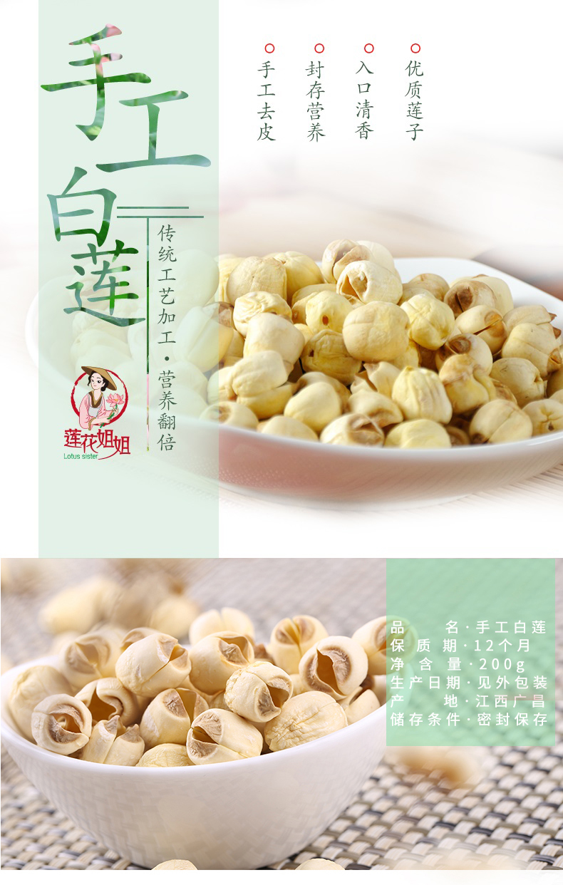 莲花姐姐莲子 冷水炖煮粉糯香甜 入口即化 无硫熏 更健康 颜色自然微黄 春种一粒莲,夏收一片荷