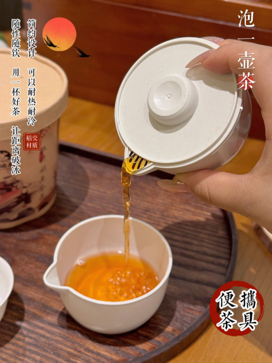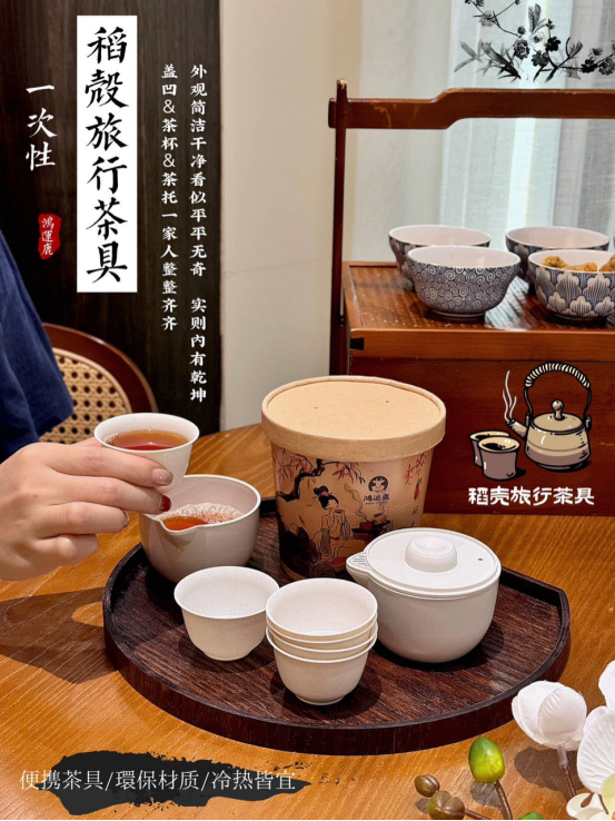 一次性稻壳旅行茶具