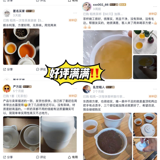 大数据快把我推给爱喝茶的人! 相见恨晚了一次性茶杯 爱茶人每逢聚会一坐下就是喝茶 这款一次性的茶具真的有被惊艳到 杯壁很厚实 倒热茶也不会变形✅ 而且还是可降解材质 环保的稻壳材质 真的再去买几袋放家里还有店铺里招呼客人
