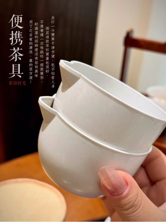 喝茶自由!不用洗的高颜值便携式茶具 就是这款稻壳材质的便携式茶具 真的安全健康又环保♻♻♻ 用稻壳做成的一次性的便携式茶具 喝完之后 还可以用来实现泥土降解 材质是双层隔热设计 真的太贴心了