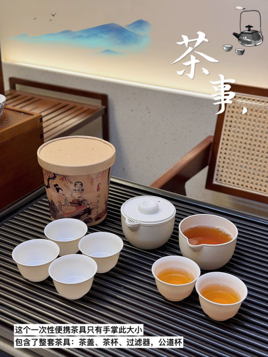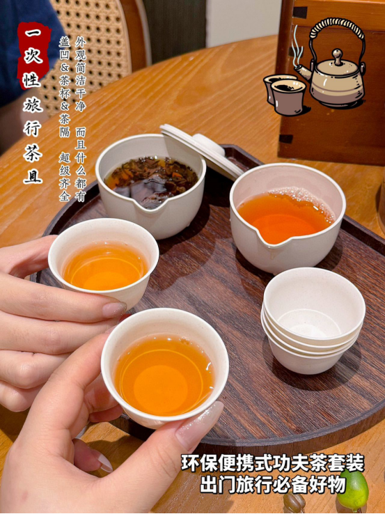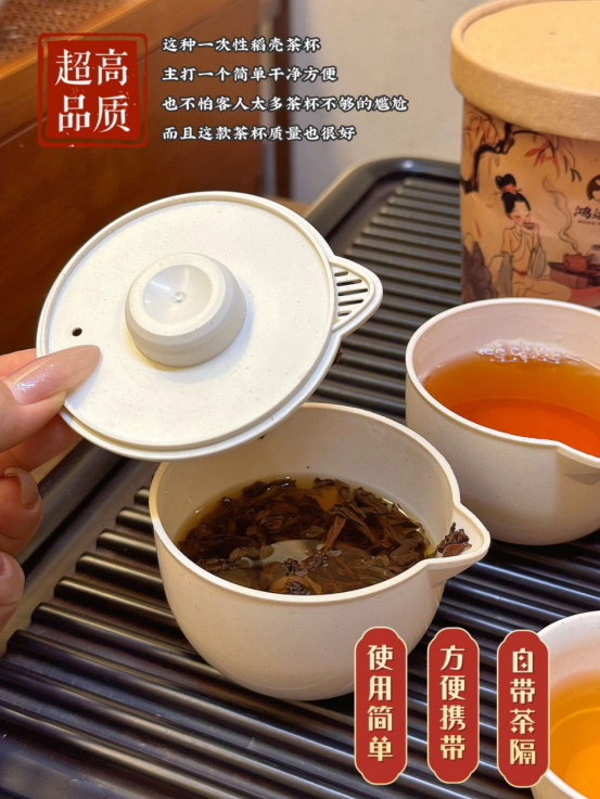 次性茶具来啦‼便捷与精致并存‼ 让你随时随地都能享受一杯好茶 快来试试吧! 当代年轻人的喝茶乐趣就是: 随处可得便是最好全新的泡茶方式 这款一次性便携带来全新的体验✅ 采用的是稻壳环保材质 携带方便 带上它,哪里都能喝上一杯清香的茶