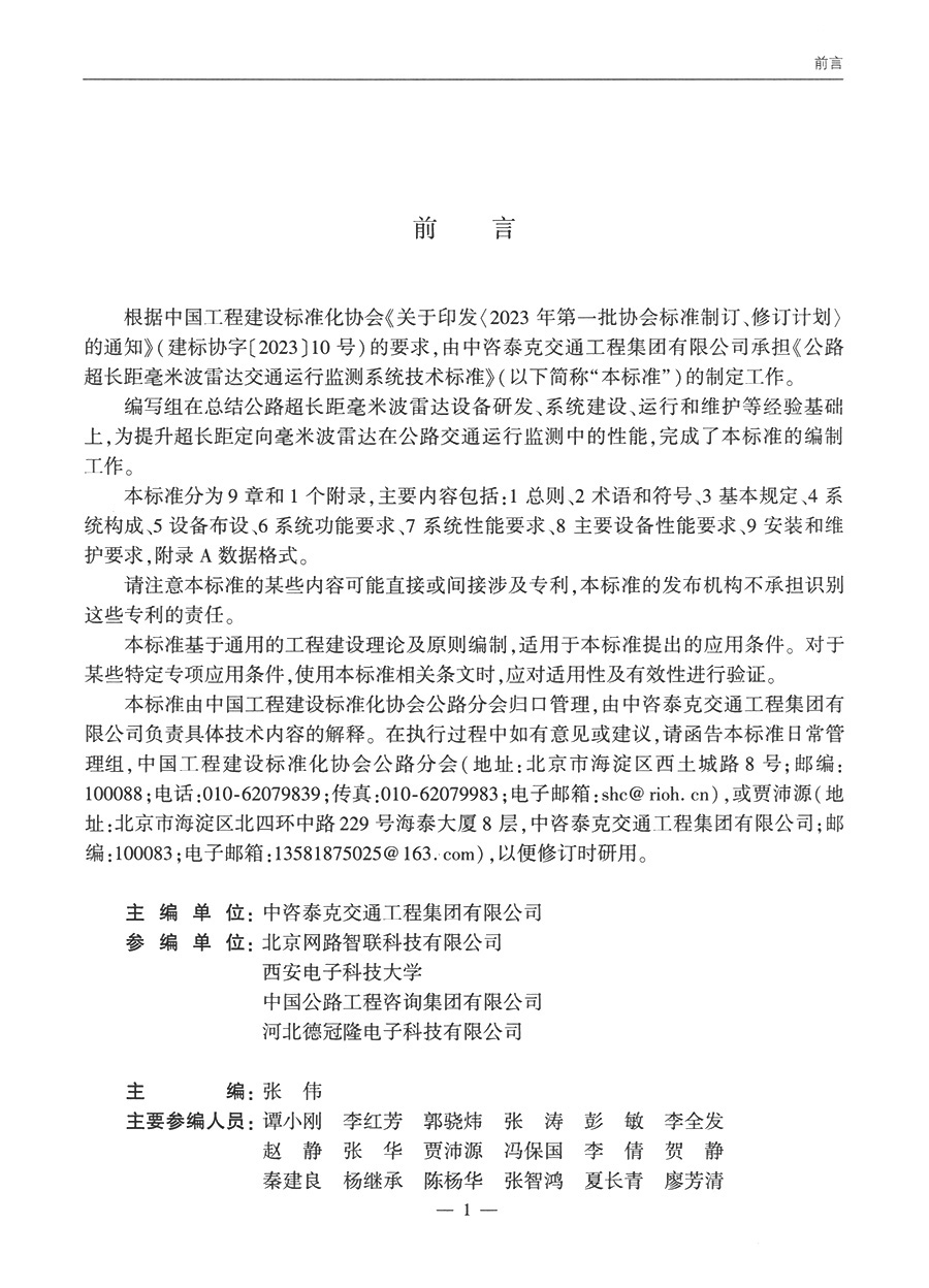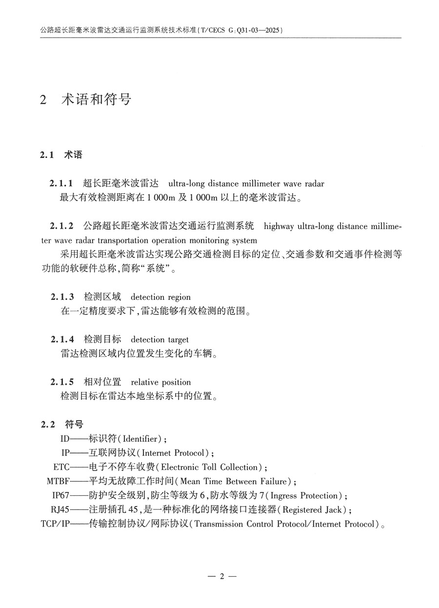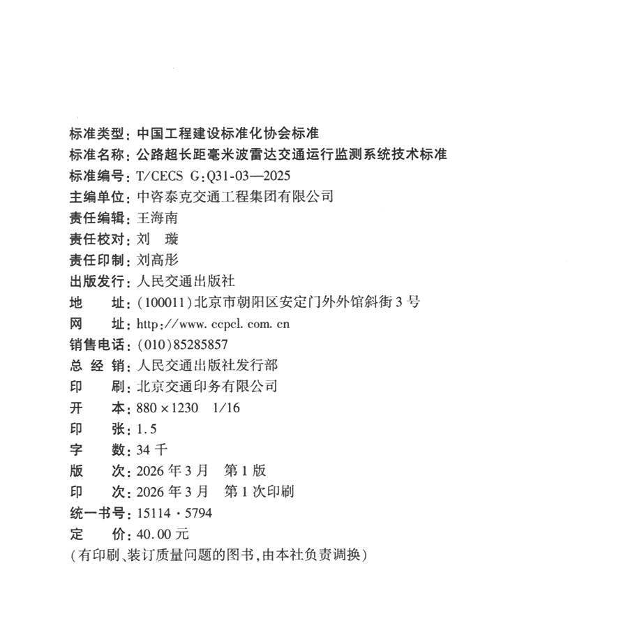 书名:公路超长距毫米波雷达交通运行监测系统技术标准(T/CECS G:Q31-03—2025)