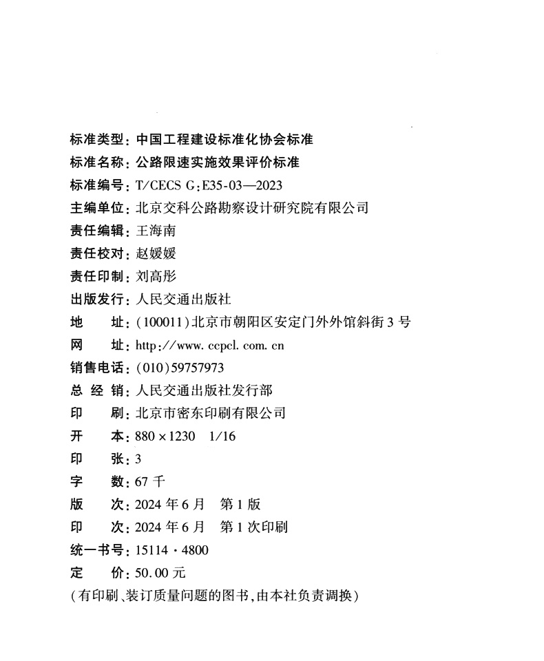 书名:公路限速实施效果评价标准(T/CECS G:E35-03—2023)