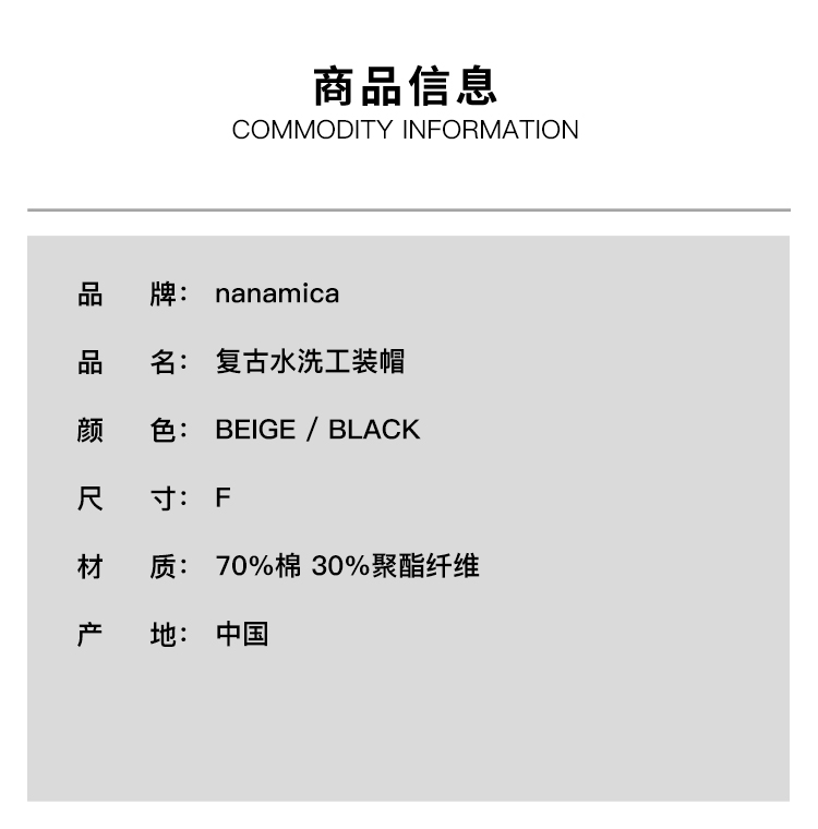 nanamica Washed Chino Cap 复古水洗工装帽 鸭舌帽