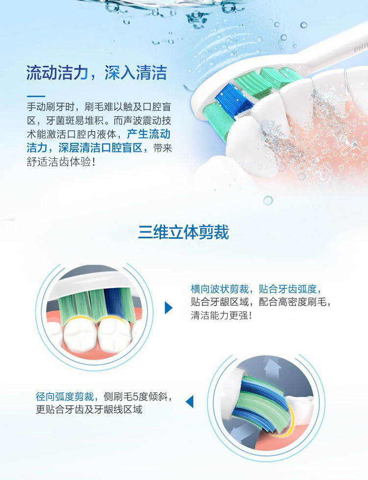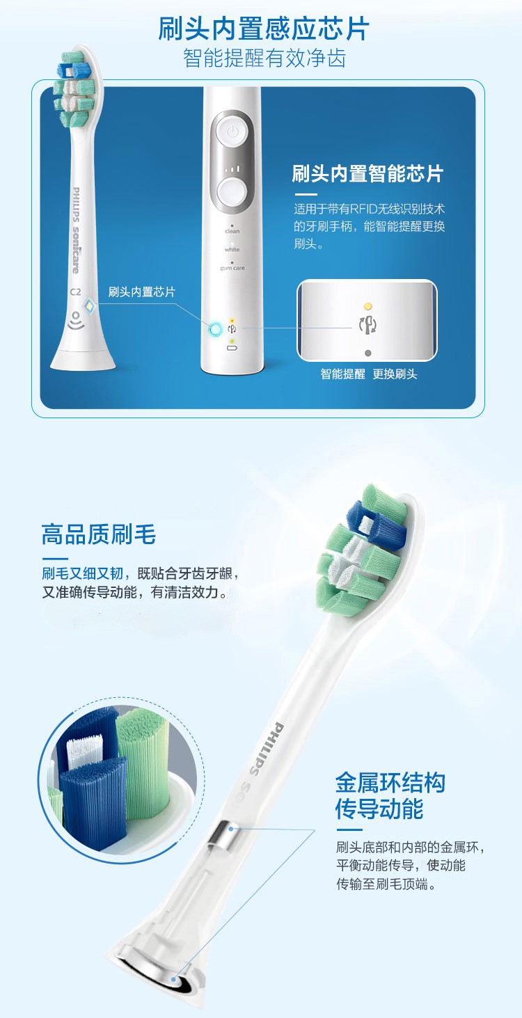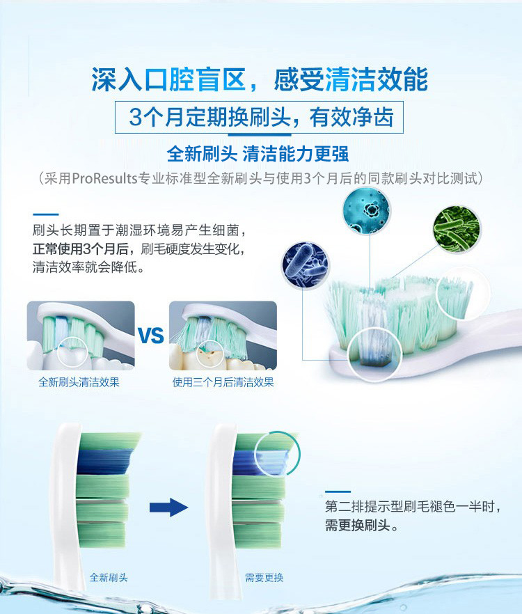 飞利浦(PHILIPS)电动牙刷头牙菌斑预防型3支装HX9023原装替换刷头