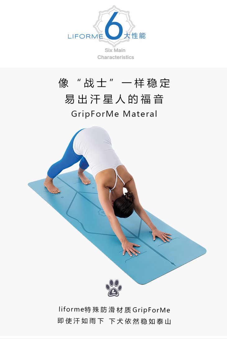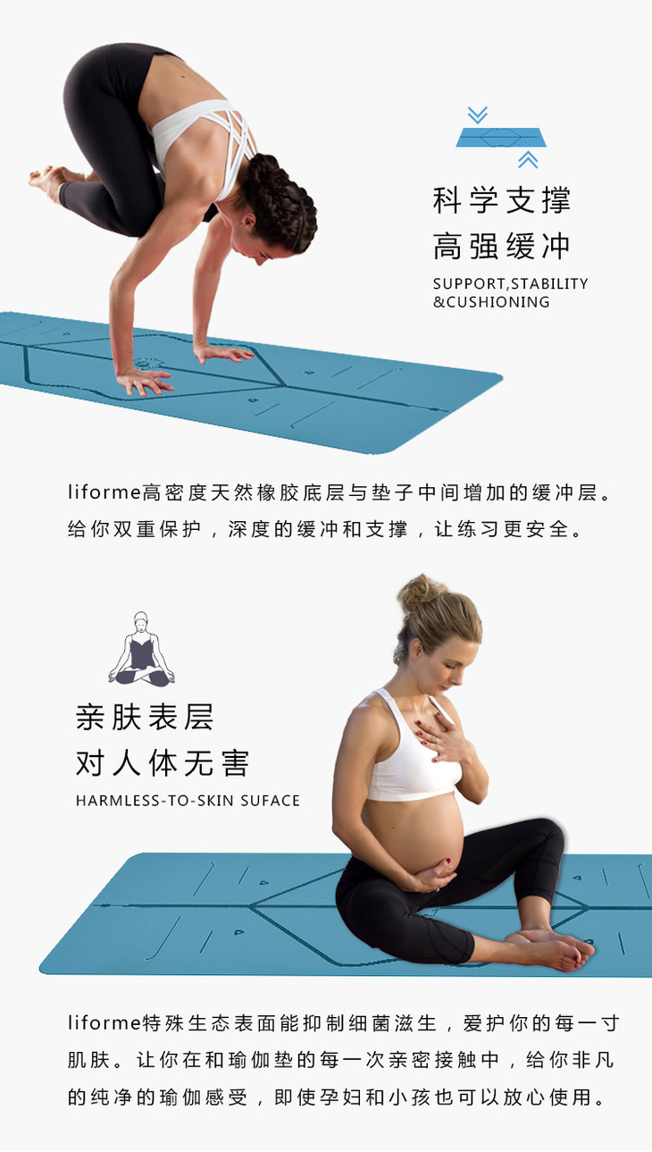 LIFORME经典版专业体位线超薄防滑瑜伽垫男女天然橡胶健身练功垫