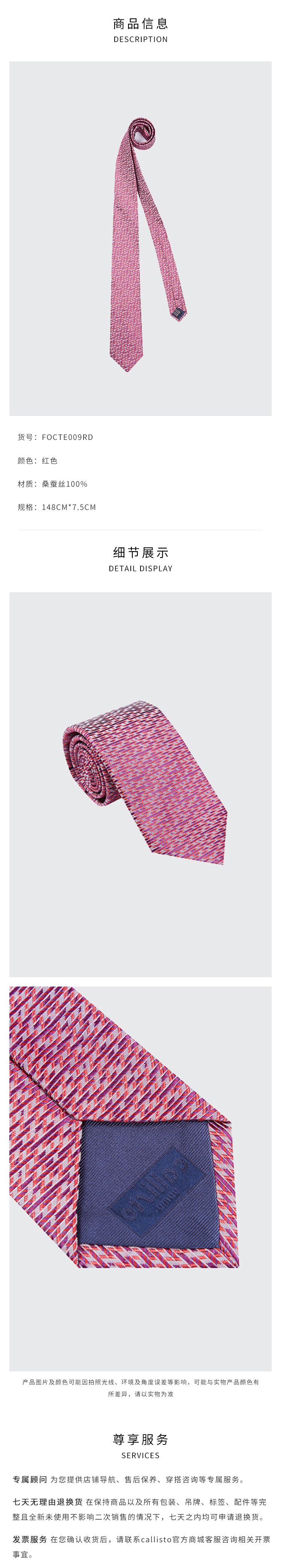 callisto红色全桑蚕丝领带 FOCTE009RD